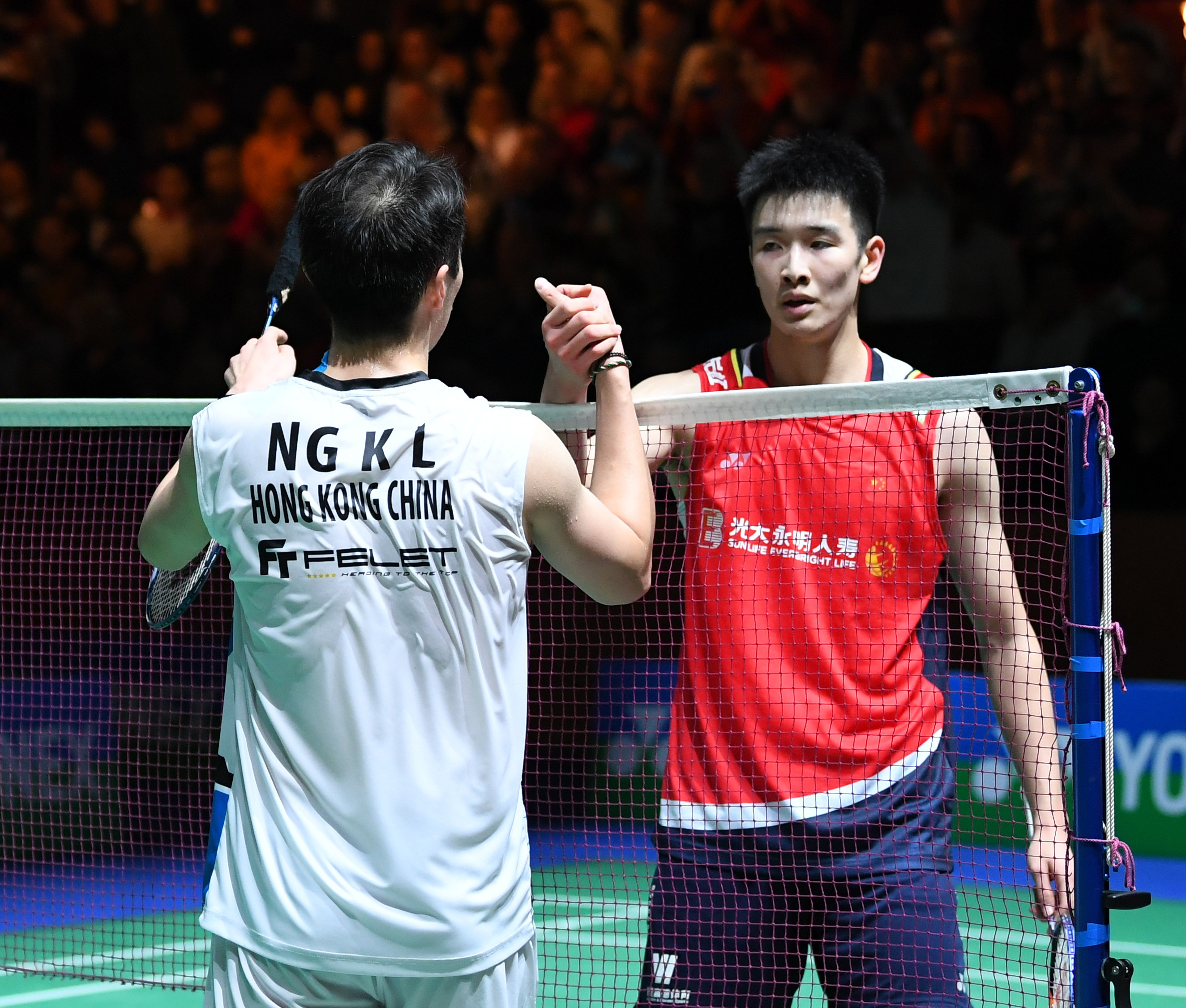 3月12日,伍家朗(左)在比赛后与李诗沣握手致意。新华社记者 任鹏飞 摄