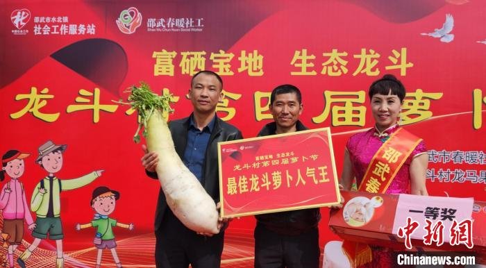 现场展开“萝卜王”“萝卜制品”评选等一系列活动,“白胖子”萝卜开始上称,一侧萝卜糕、萝卜酱菜、萝卜油饼……给民众带来最美的萝卜盛宴。最后,净重23.9斤的“白胖子”喜提“萝卜王”。