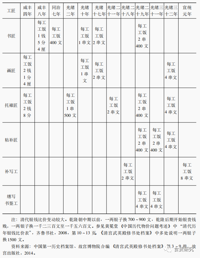表1 界画匠的饭食钱