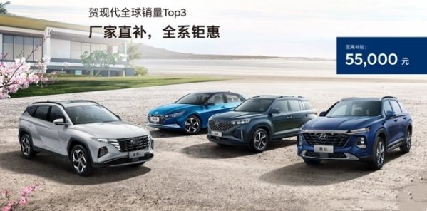 近日,据智车派了解,北京现代官方推出了”厂家直补 全系钜惠“的补贴活动。据悉,该活动至高优惠补贴5.5万元,包括了的旗下车型有途胜L、伊兰特、库斯途等八款车型,活动时间截至3月31日。