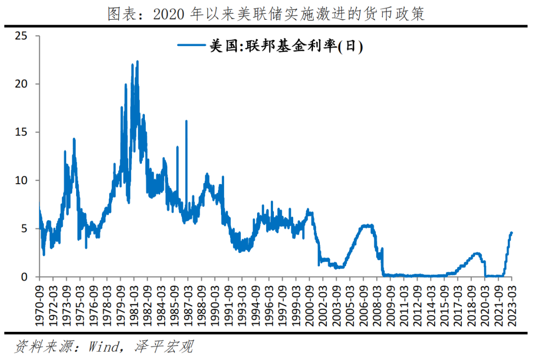 ▍原因:美联储前期直升机撒钱超发货币、后期激进加息收紧货币,引爆金融风险