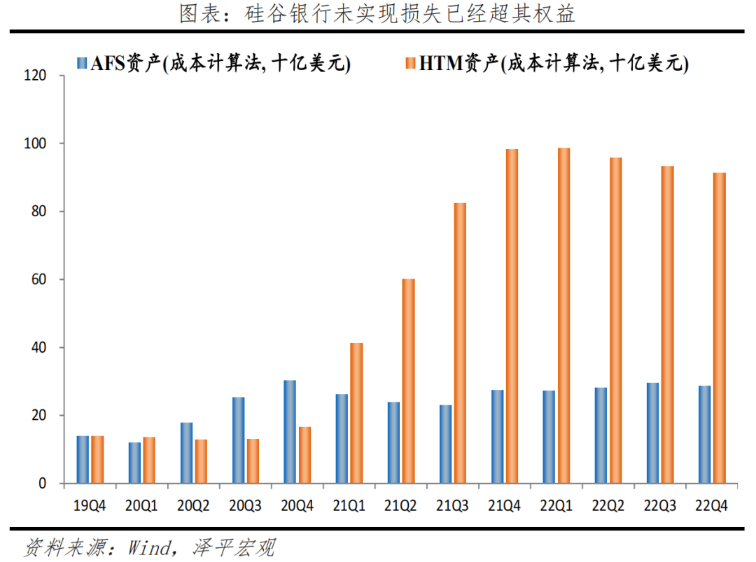 美联储加息,资产端受挫巨亏。随着美联储开启加息进程,硅谷银行资产端中的AFS(主要是国债)资产开始出现浮亏。为了遏制浮亏,硅谷银行对其AFS资产进行了重新分配。其中88亿美元的AFS资产转换到HTM资产中。但其AFS资产占比下降并不明显。持有的HTM(主要是MBS)又具有路径依赖的“负凸性(Negative Convexity)”,因此整体组合的久期随着利率的增加变得越来越长。截至2022年底,硅谷的HTM资产(主要是MBS)的久期延长至6.2年,同时持有的AFS资产(国债)录得约25.03亿美元的未实现亏损(URL)。若计算其HTM资产浮亏,则硅谷银行在2022年底已经技术性破产,其175亿美元的未实现损失已经超过了其153.9亿美元的资本权益。