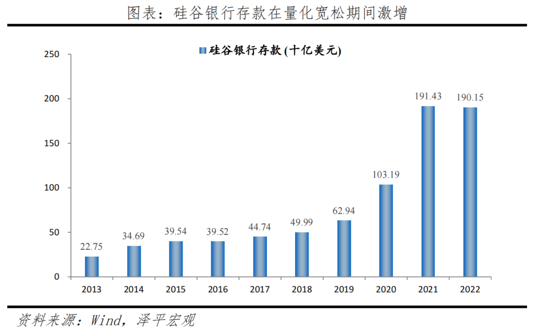 硅谷银行作为专注于面向科技和生物技术等高科技公司的硅谷本地银行,其存款在流动性充沛时迅速扩张。截至2022年第二季度,其资产较2019年的630亿美元增至1900亿美元,涨幅约为200%。