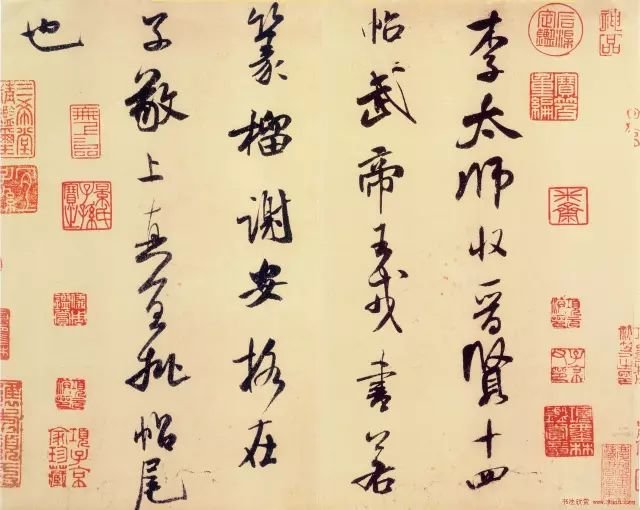 “李太师收晋贤十四帖,武帝王戎书若篆籀,谢安格在子敬上,真宜批帖尾也。”