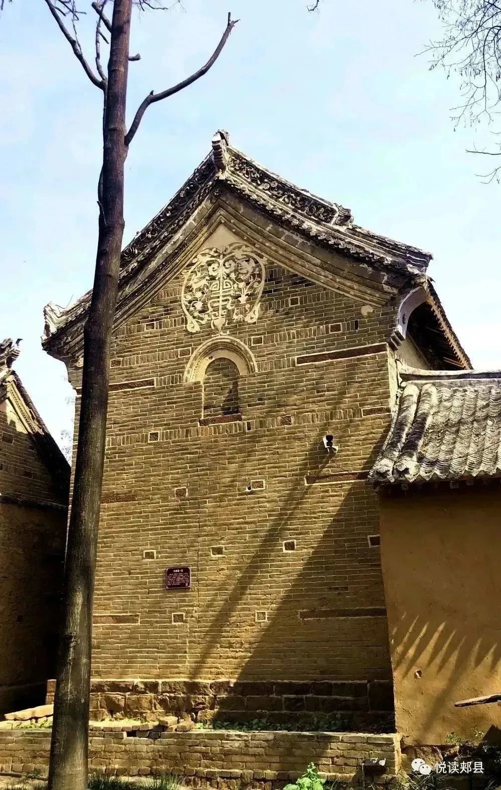 当时间里的喧嚣褪去,岁月变迁,铅华洗尽,那些石头与古砖、灰瓦所解构的楼宅庭院,归位于一种朴素的风景给人以回味和追问,我们能感受到的是时间之流长,万物之灵韵。我的下意识里对这种朴素的古典美心生情愫。一棵百年老榆树,一条青砖墙面的老街,让我有一种归来般的恍惚感。这种感觉是奇特而悠远的,使我感到这样的造访或曰行走带来的一次身心安宁。