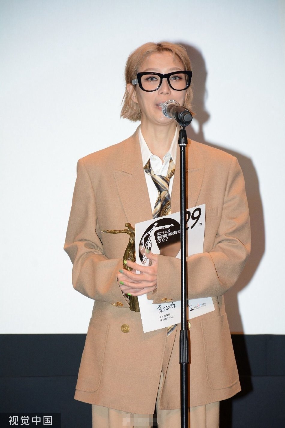 郑秀文出席香港电影评论学会大奖 西装眼镜身材瘦削