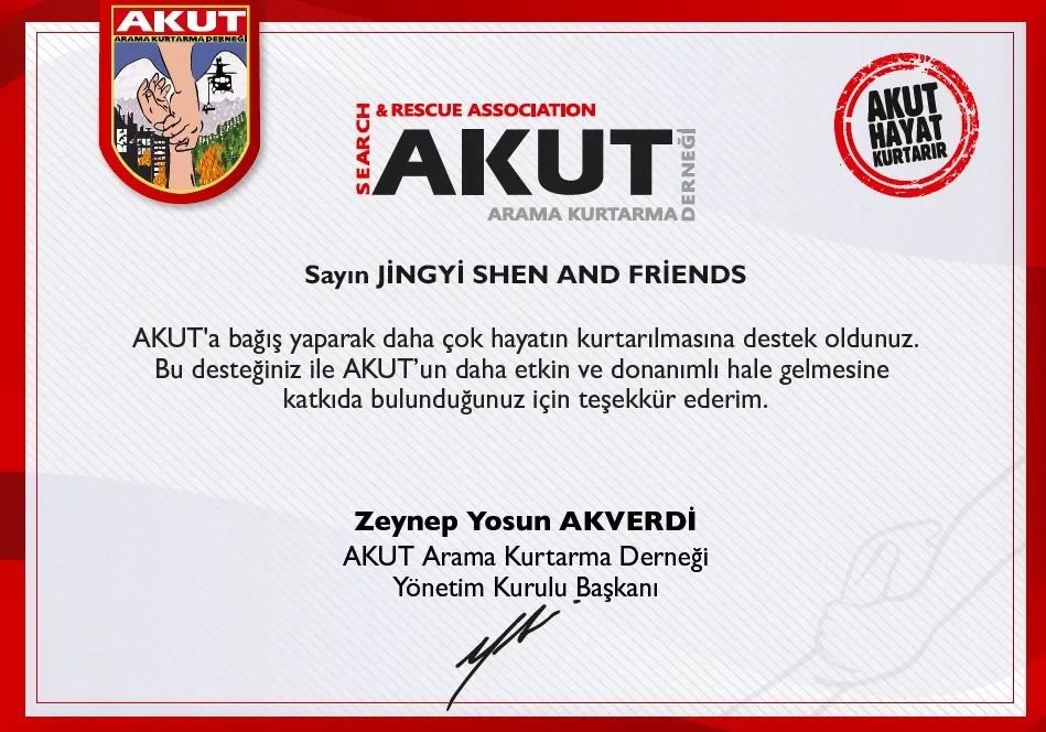 一天,AKUT 团队给静宜寄来了一张电子证书,上面印着“静宜和她的朋友们”。