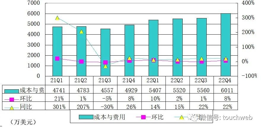 雅乐科技2022年第四季度成本与费用为6011万美元,较上一季度的5558万美元增长8%,较上年同期的4929万美元增长22%。