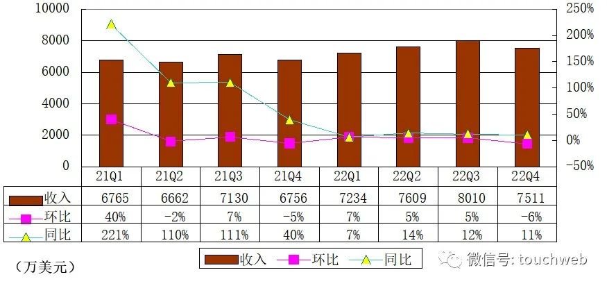 雅乐科技2022年第四季度营收为7511.4万美元,同比增长11.2%,其中:社交服务收入5404.6万美元,游戏服务收入2106.8万美元。