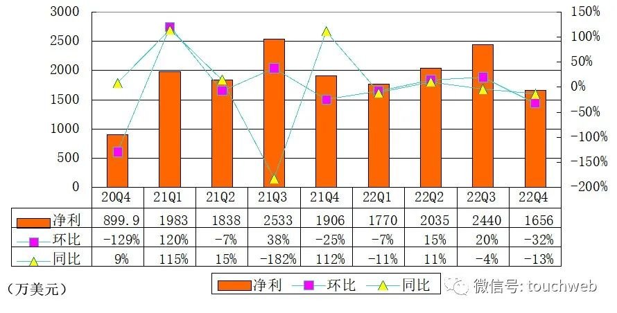 雅乐科技2022年第四季度净利润为1656.5万美元,较上一季度的2442万美元下降32%,较上年同期的1906万美元下降13%。