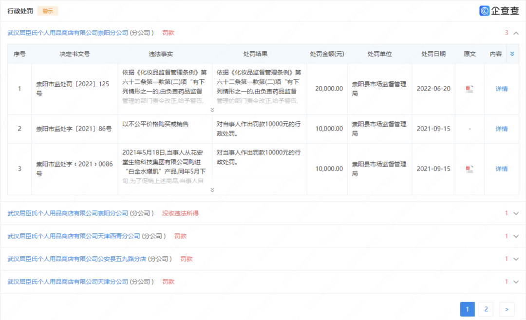 此外,武汉屈臣氏多个子公司分店也屡屡被行政处罚。