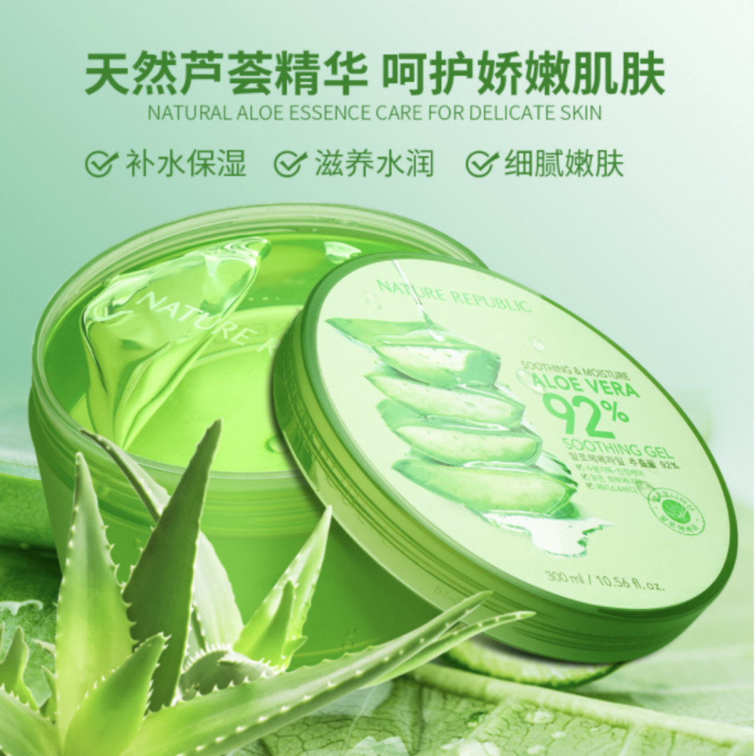 该产品在备注中称,产品名中“芦荟”指本品含有成分“库拉索芦荟( ALOE BARBADENSIS )叶汁”,包装图中的“92%芦荟叶汁”92%指含有成分库拉索芦荟( ALOE BARBADENSIS )叶汁的1号配原料整体添加量为92%。