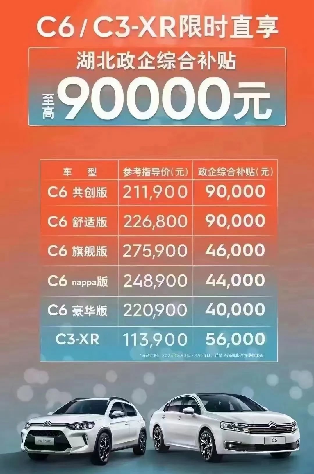 这番热闹起源于3月,湖北省政府联合东风汽车集团推出补贴活动,从3月1日到31日,政企补贴万元以上,在湖北的东风系4S店里,东风雪铁龙、东风本田等品牌全面降价,要享受该补贴,消费者须在湖北当地购车,且交全款,上完湖北牌照后,再返给车主补贴。
