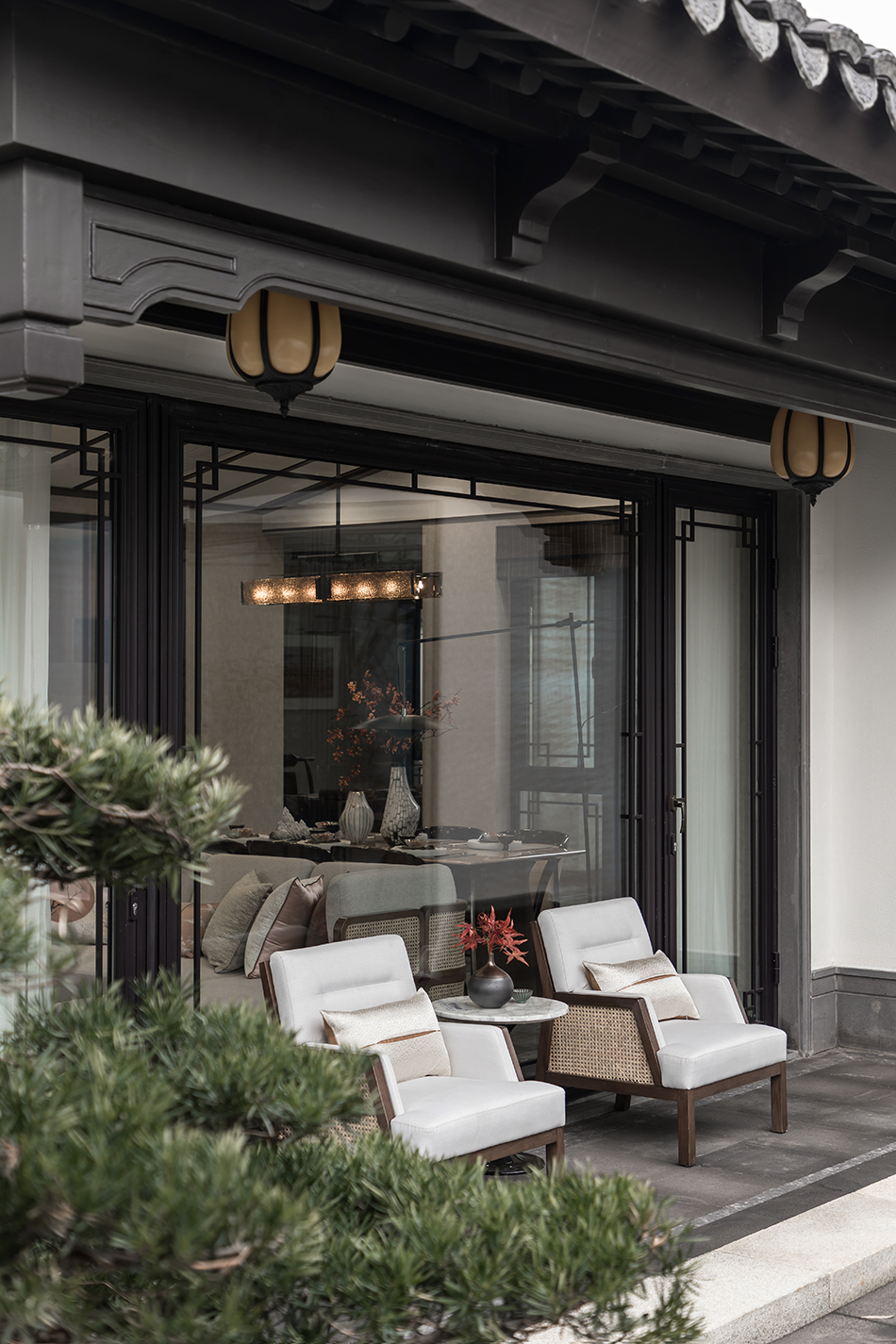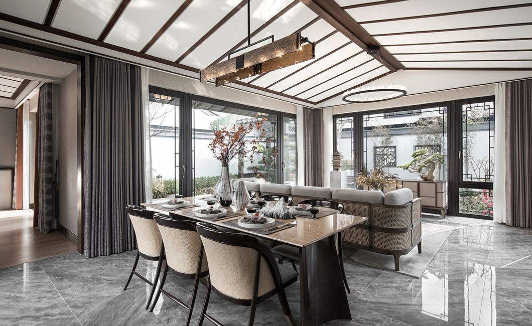 设计者将古典诗情画意与现代生活气息糅为一体,创造出独具东方气韵的园林空间,以独具匠心的新中式文化宅院典范,回应一座城市的人文传承。它超越生活本身,无关大小,承载着温润而安然的内心世界,在人与空间自在而悠扬的对话中开启一段传统与当代的家宅浪漫诗篇。