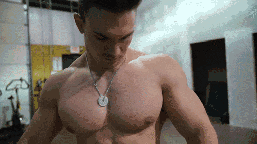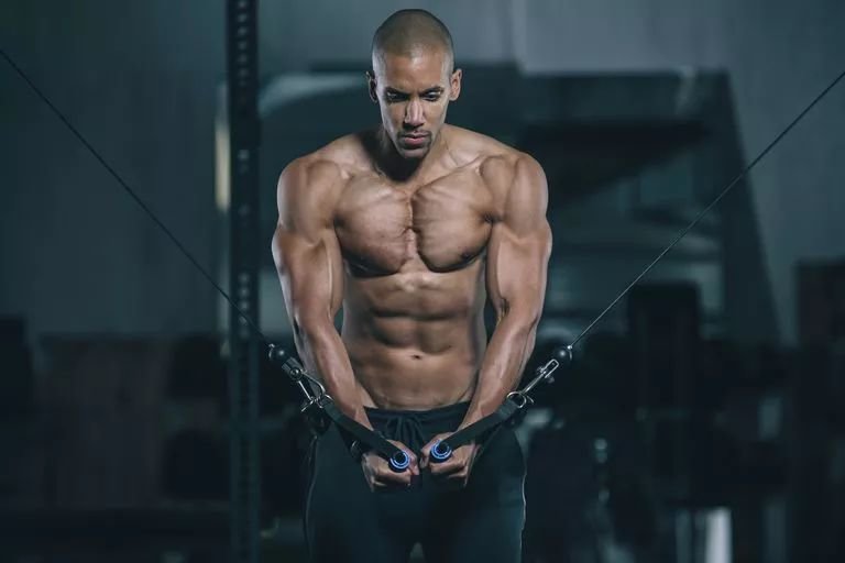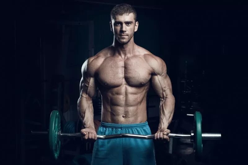 无论二头还是三头肌肉发达、线条明显。
