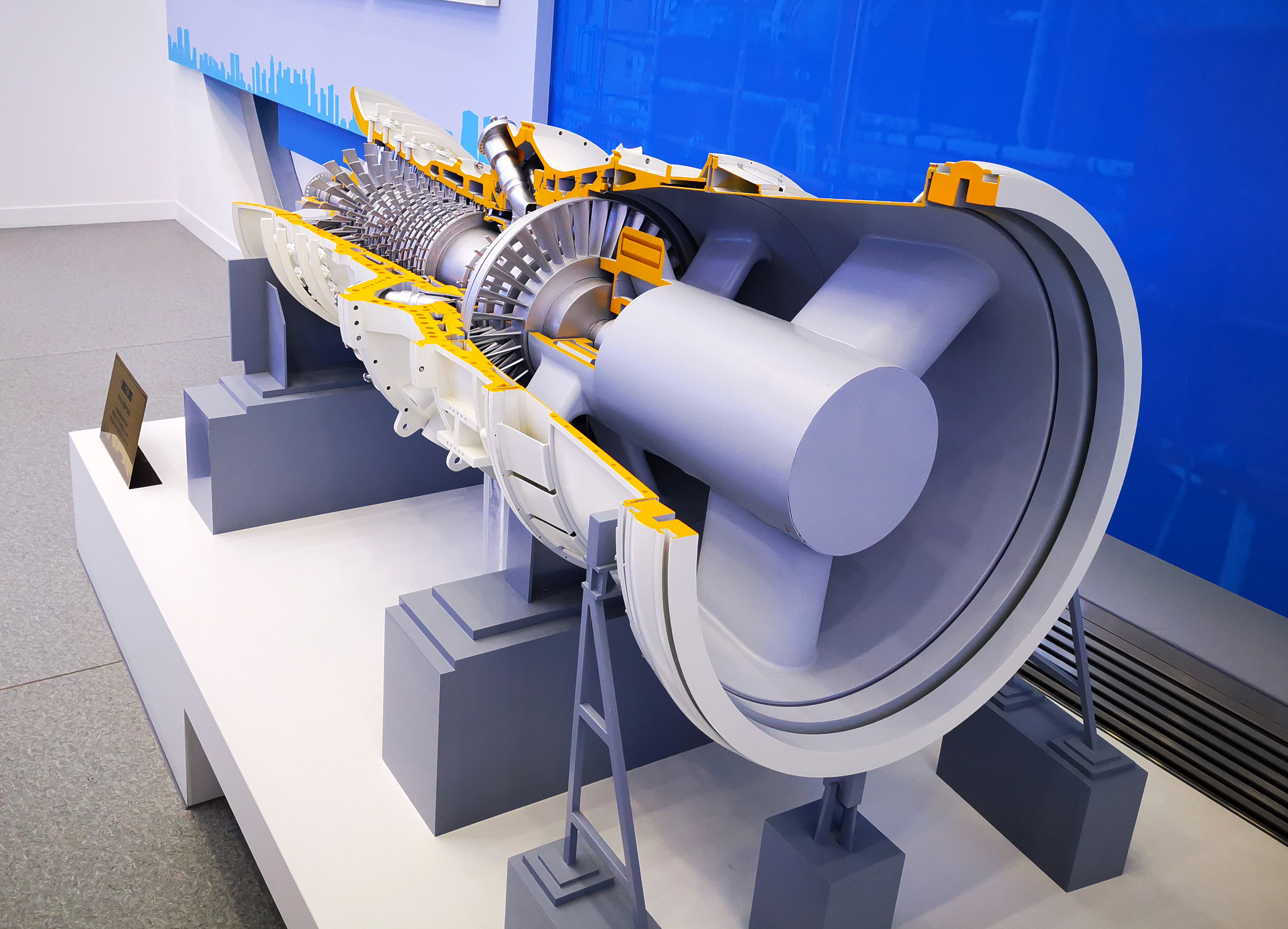 东方汽轮机有限公司展厅内一台燃气轮机模型。新华社记者陈健 摄