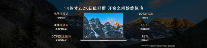 设计方面,荣耀 MagicBook X 14 Pro 重 1.34Kg,厚 15.9mm,采用一体化金属转轴,配备 14 英寸 2.2K 屏幕,支持电子书模式,通过莱茵双护眼认证。