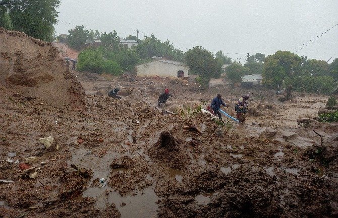 2023年3月13日,在马拉维南部布兰太尔地区,几名居民在淤泥中行走。马拉维警方13日说,热带风暴“弗雷迪”席卷这个非洲国家南部,造成多人死亡和失踪。 新华社发(约瑟夫摄)