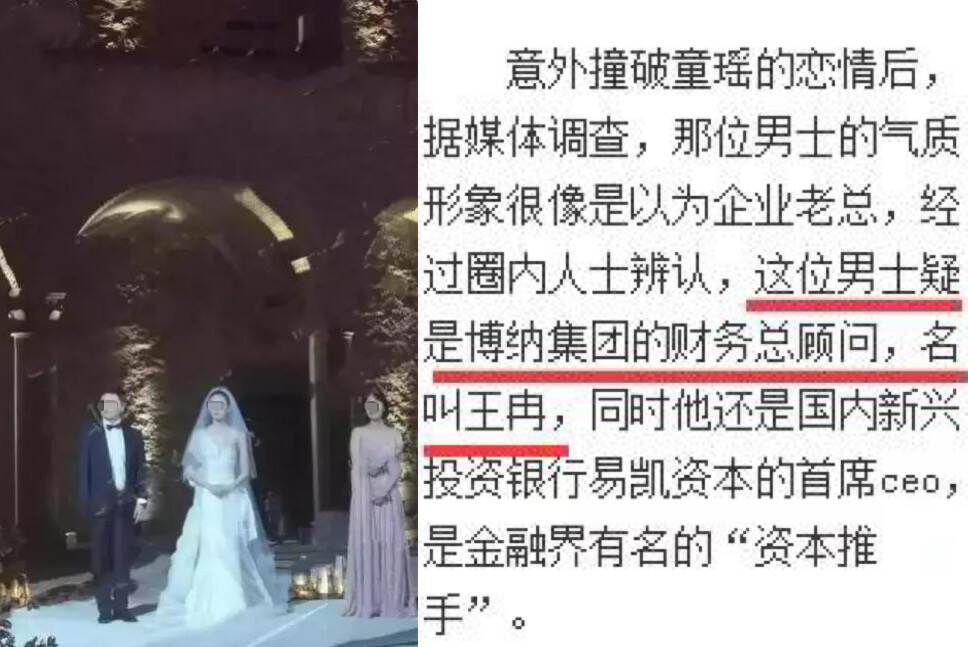 在2013年时,童瑶就被拍到和大她17岁的神秘男子在街头约会,有人爆料对方身份是博纳集团财务总顾问、新兴投行易凯资本创始人王冉。