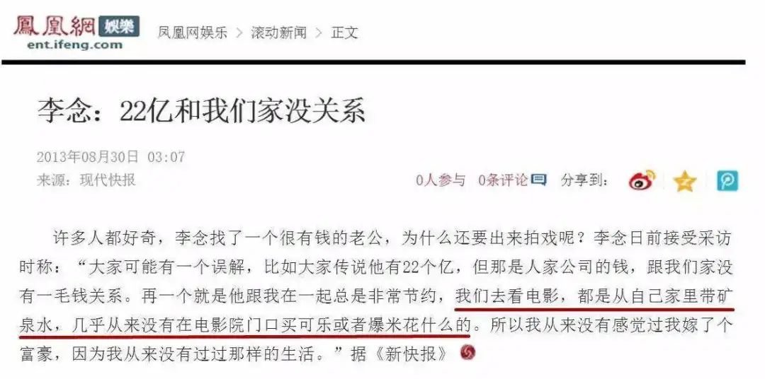 和他在一起,李念看电影也要从家里带矿泉水、从没买过可乐和爆米花;为了呼应老公不爱在外吃饭的节俭,还曾婚前三个月,停工专门去学做饭。