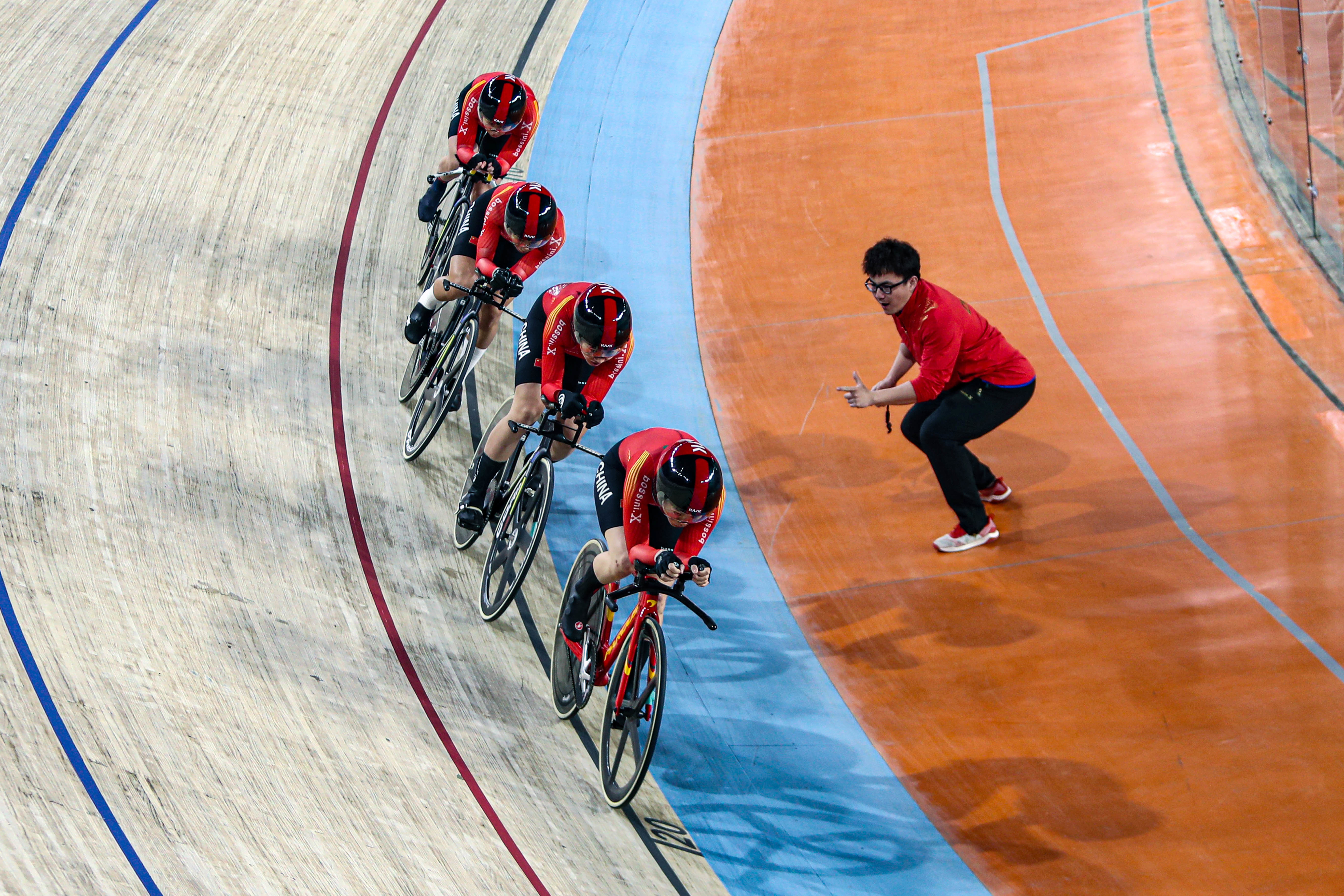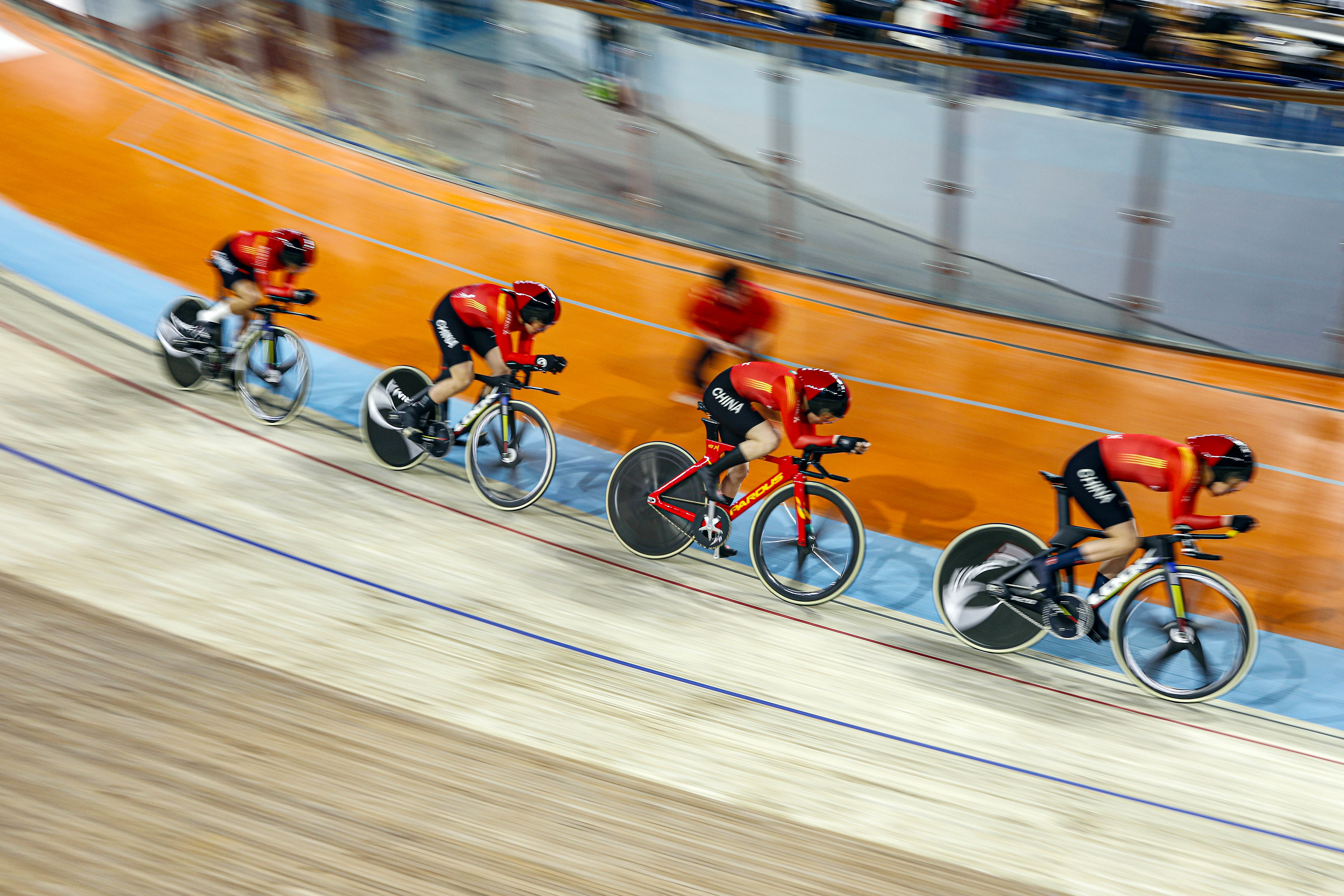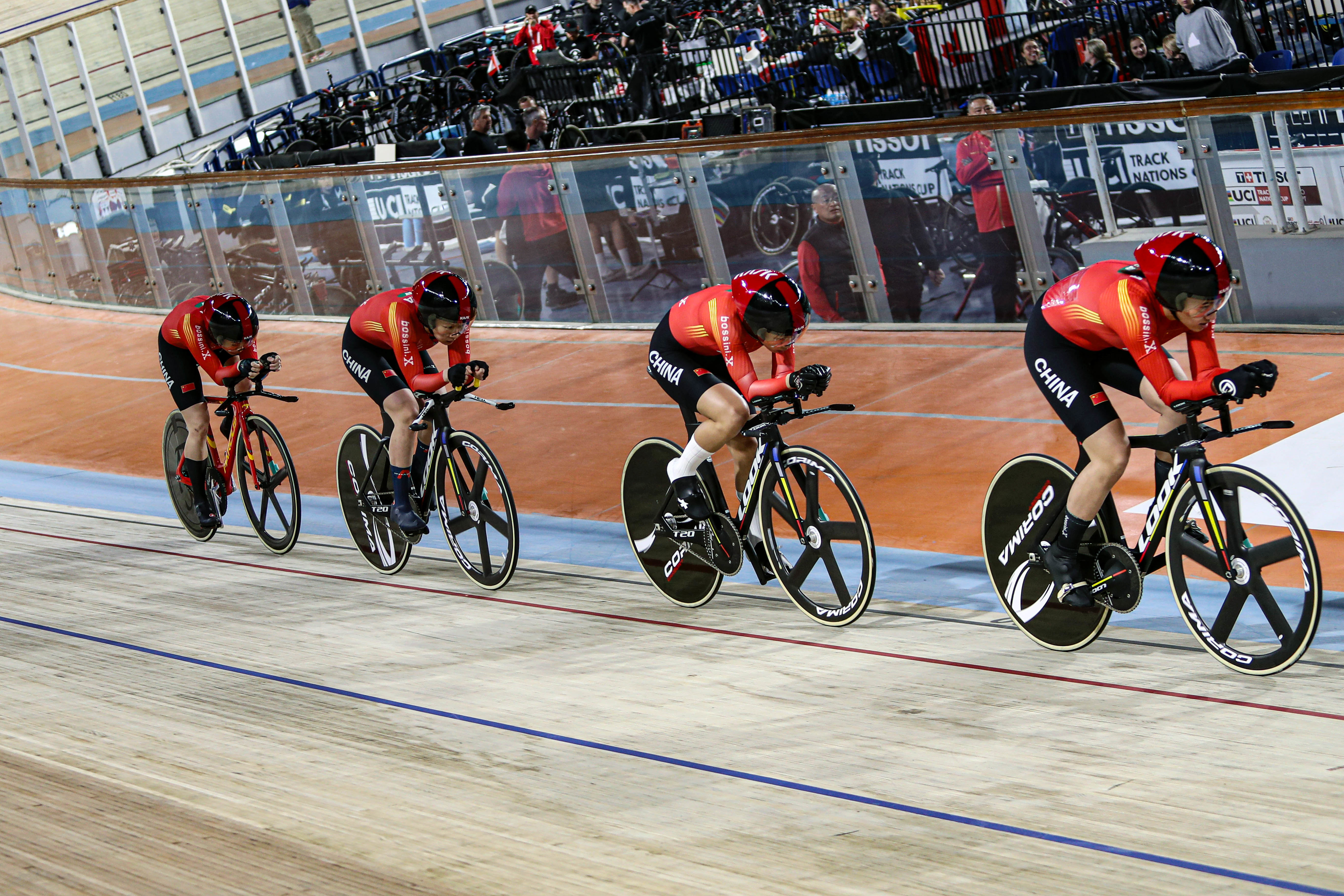 3月14日,中国队在女子团体追逐赛预赛中。新华社发(艾哈迈德·戈马摄)