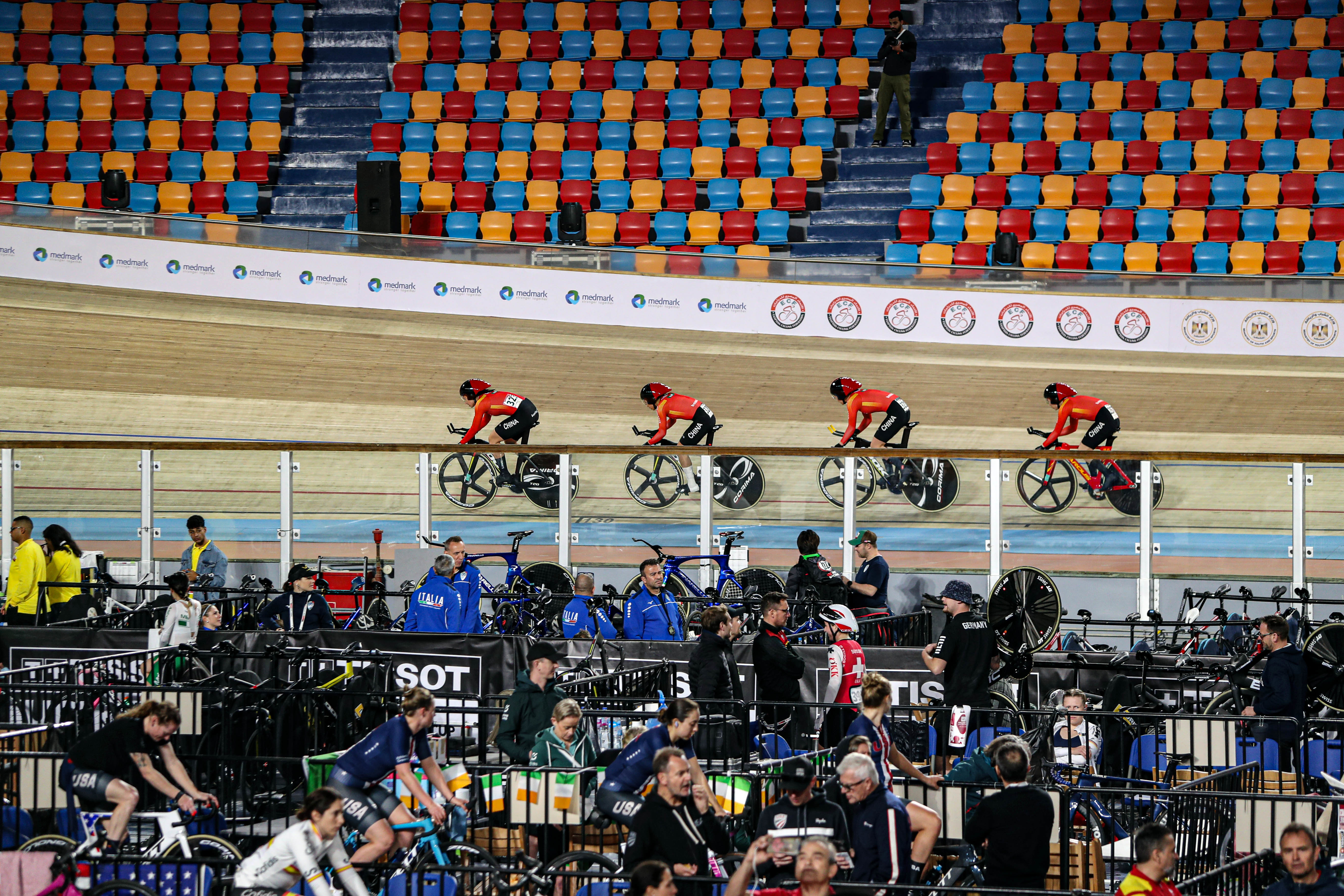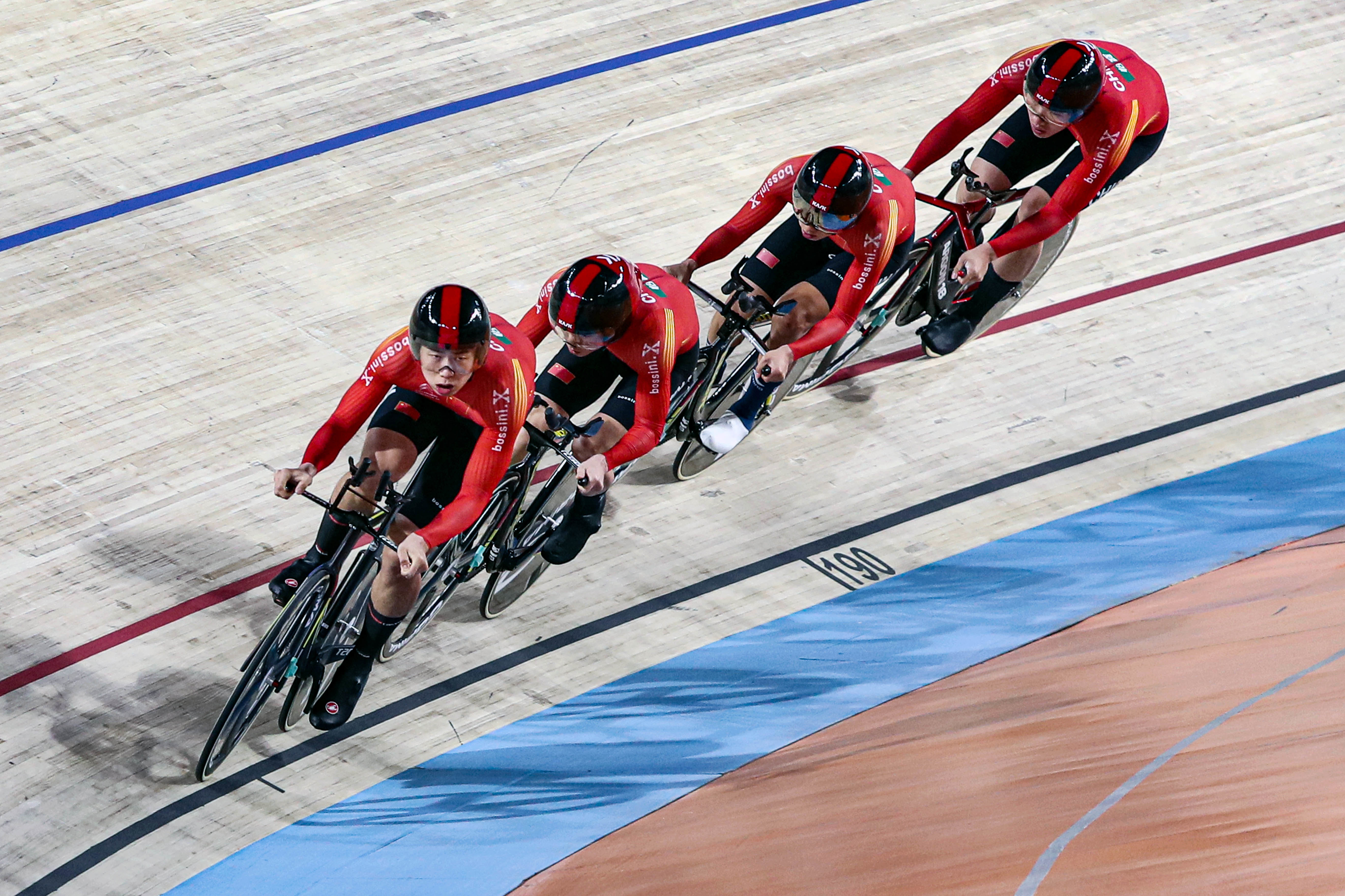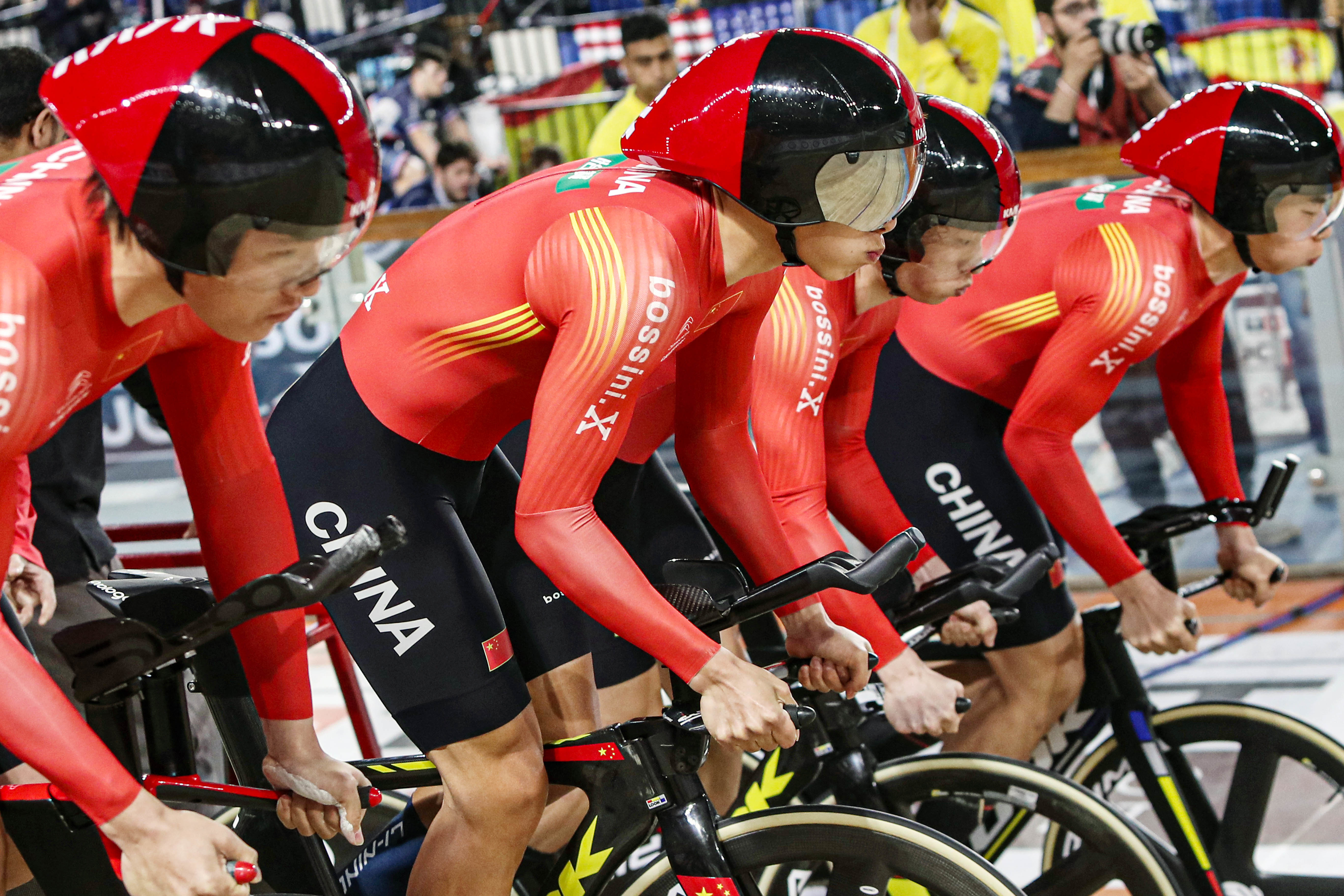 3月14日,中国队在男子团体追逐赛预赛中。新华社发(艾哈迈德·戈马摄)
