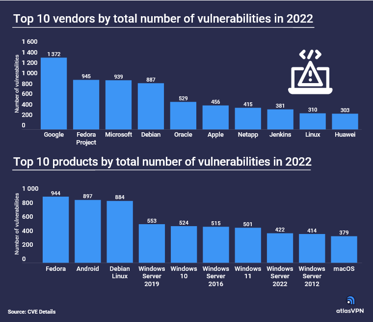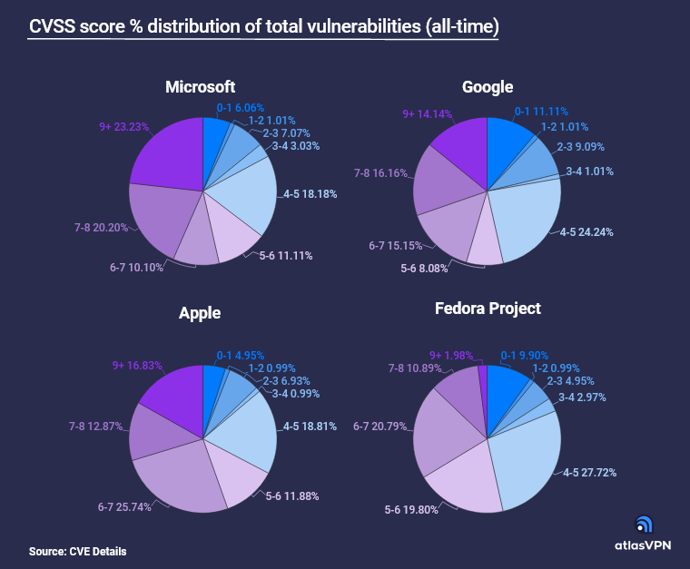 IT之家 3 月 16 日消息,根据安全公司 Atlas 公布的最新报告,谷歌、Fedora、微软产品存在的漏洞数量最多。苹果公司以 456 个漏洞位居第六、华为以 303 个漏洞位居第十。