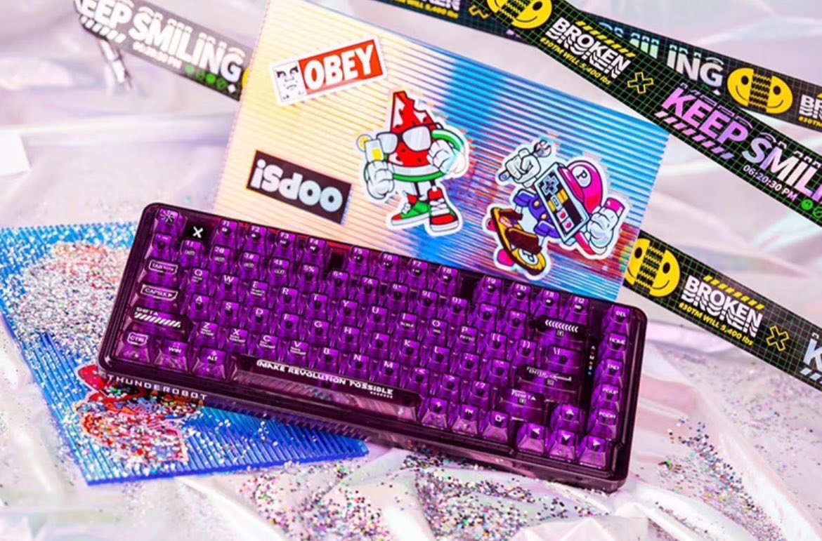 具体配置方面,雷神 K75 三模机械键盘采用紧凑型布局设计,保留完整键盘功能的同时为桌面节省 30% 的空间。产品本身采用 PC 定位板,并选用了全硅胶消音材质,搭配 gasket 结构,可消除大部分空腔音,带来更加软弹的手感。