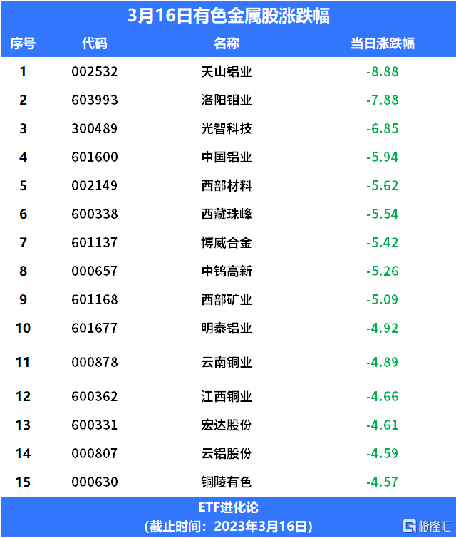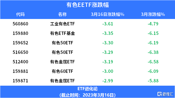 工业有色ETF、有色ETF基金、有色50ETF、有色ETF、 有色金属ETF、有色60ETF跌超3%。