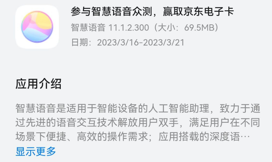 IT之家 3 月 16 日消息,据网友投稿,华为智慧语音开启众测,安装包大小 69.5MB,时间为 3 月 16 日-21 日。