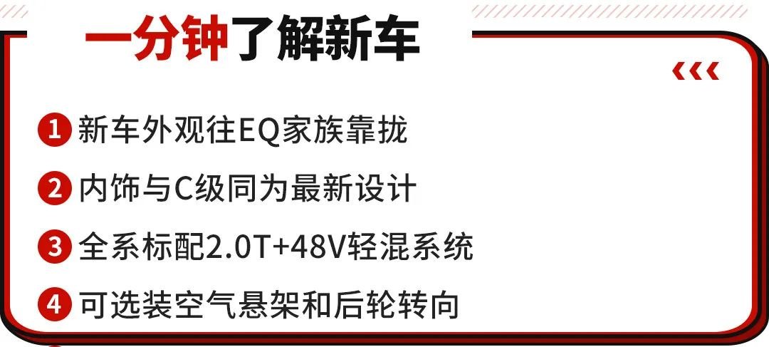 新车全系的2.0T发动机都加上了48V ISG电机,与C级的技术相同,但排量更大。