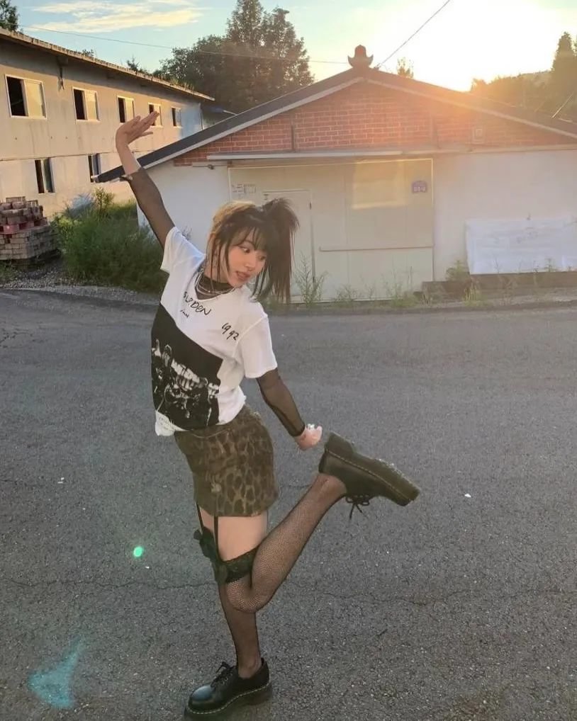 比起元气少女风、JK少女裙,酷飒、随性的穿搭风格也更适合她。
