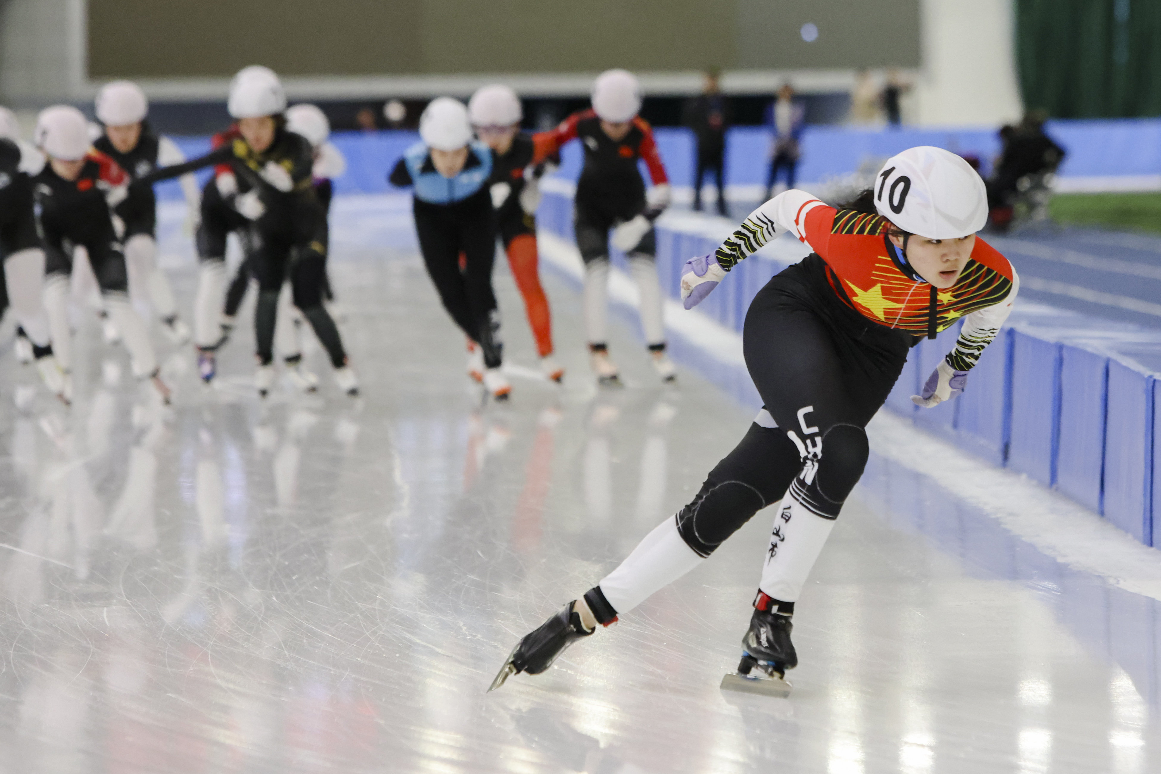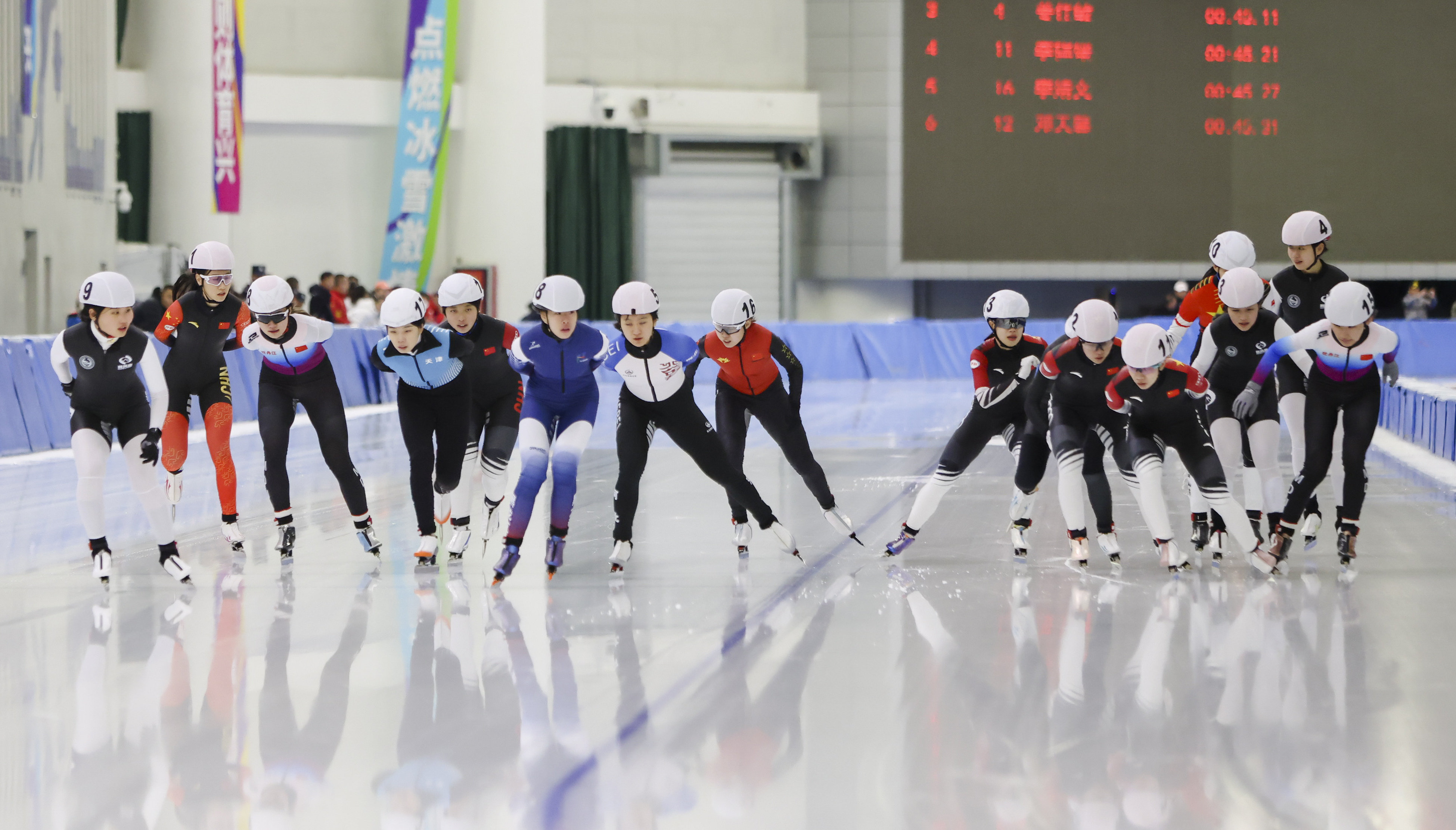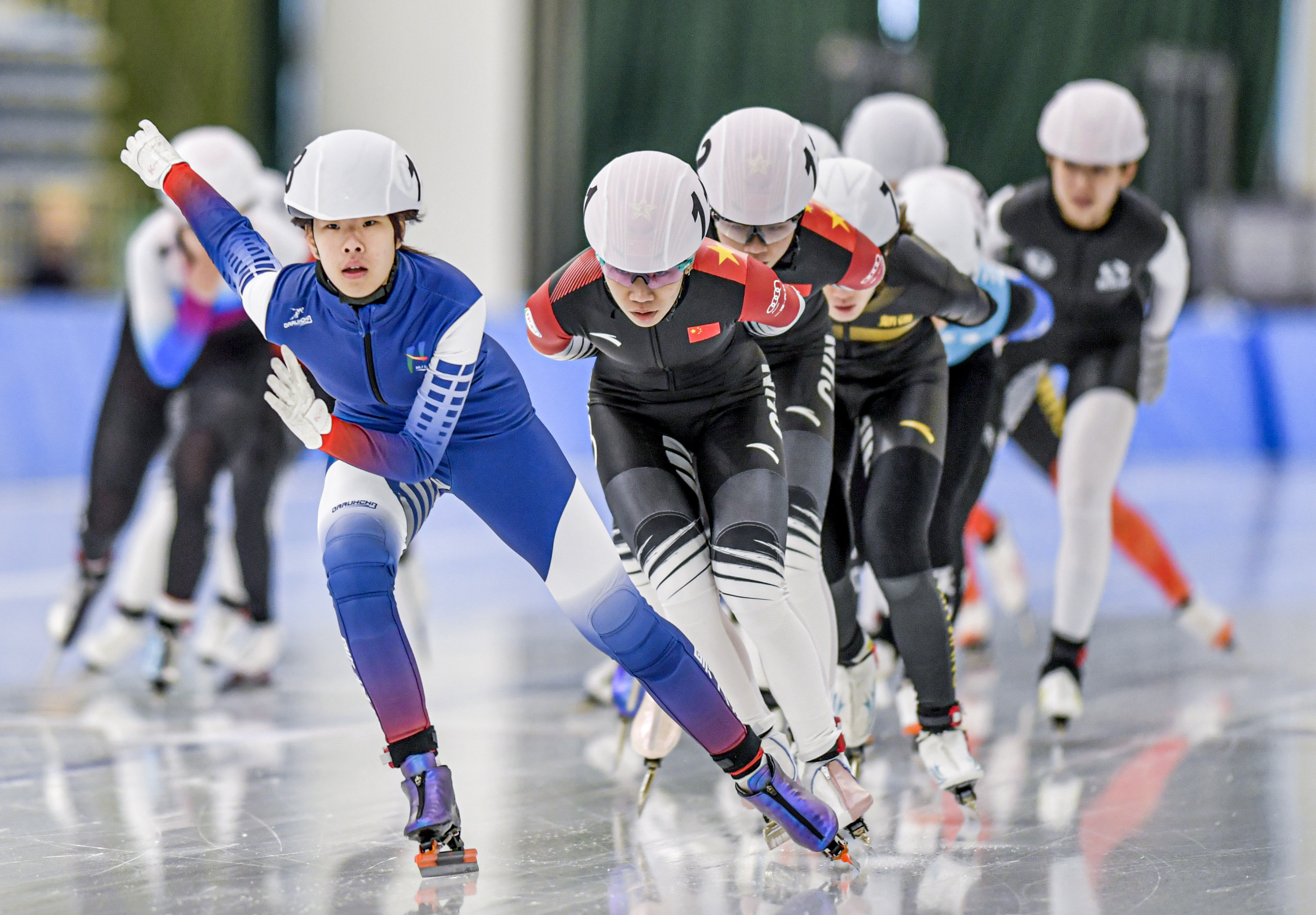 当日,2022-2023赛季全国速度滑冰锦标赛女子集体出发决赛在乌鲁木齐举行。