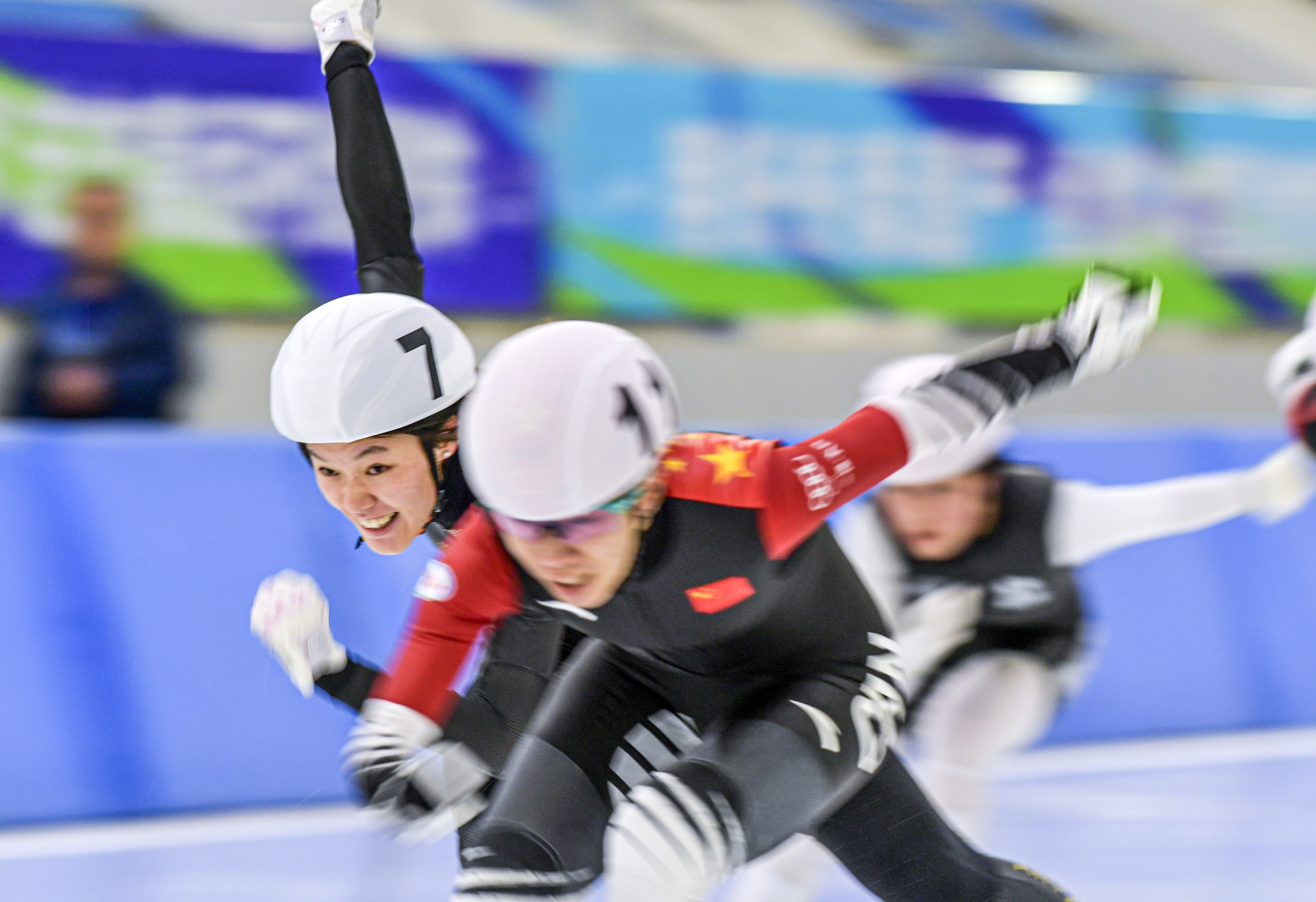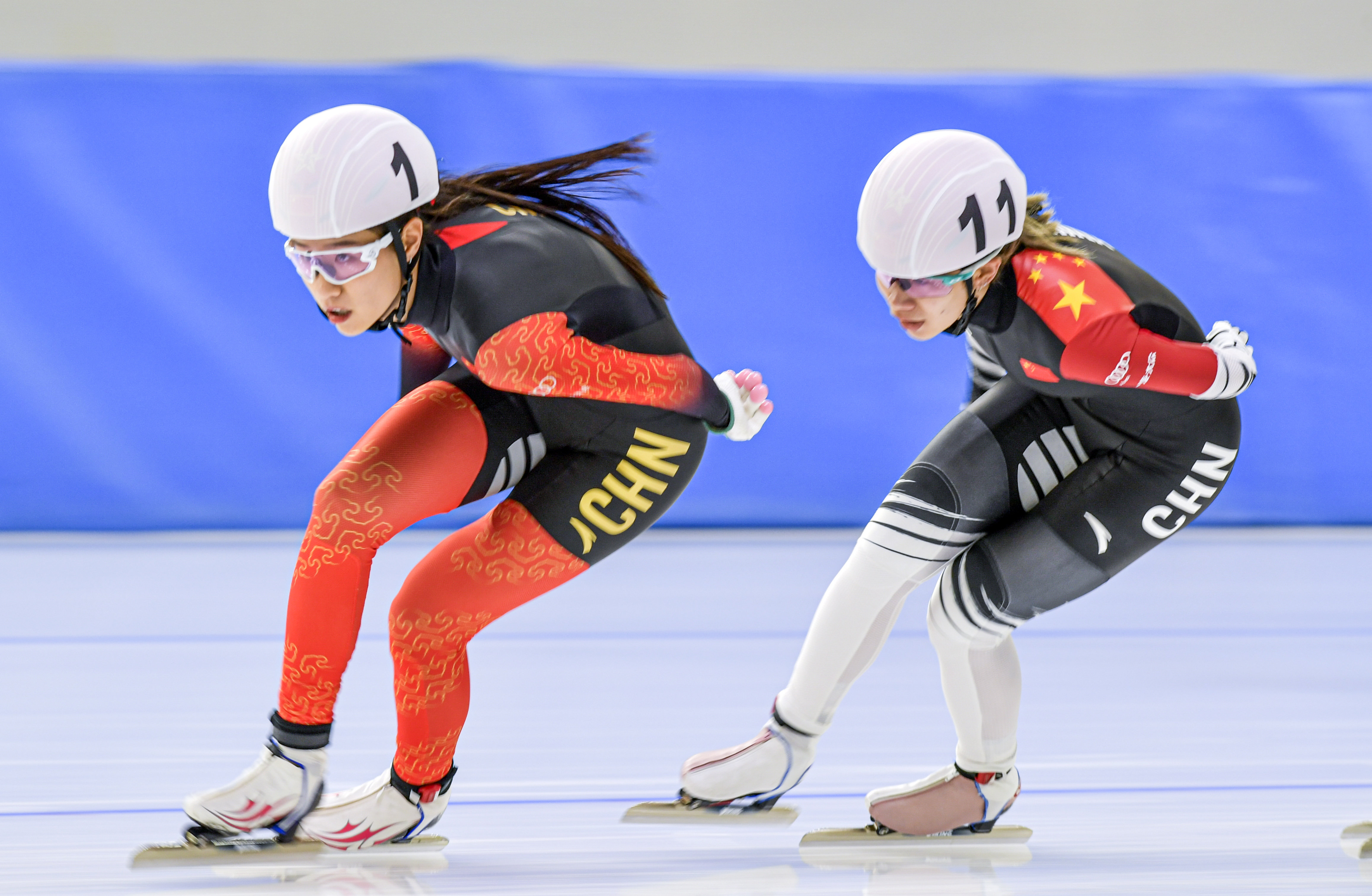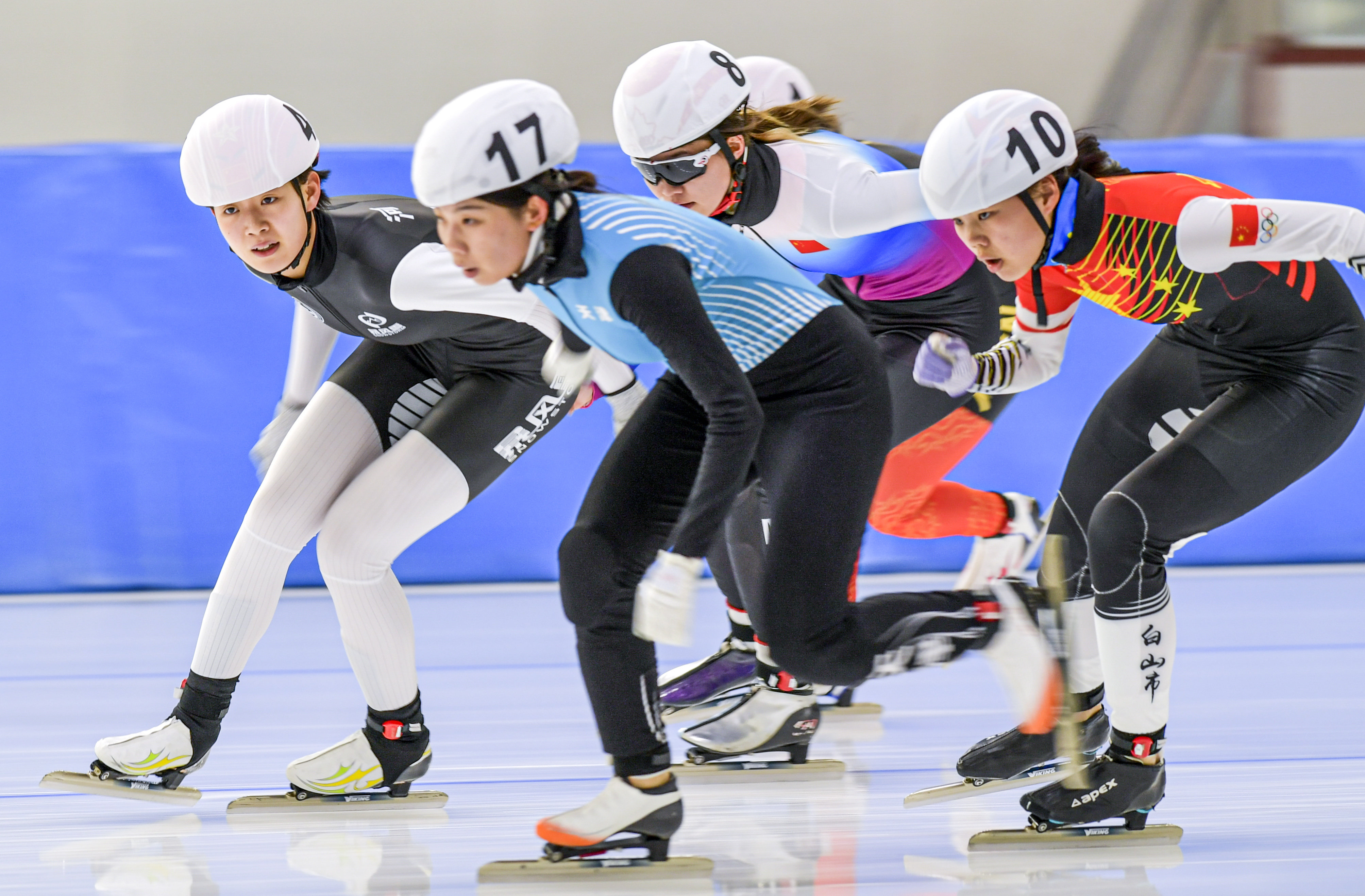 当日,2022-2023赛季全国速度滑冰锦标赛女子集体出发决赛在乌鲁木齐举行。