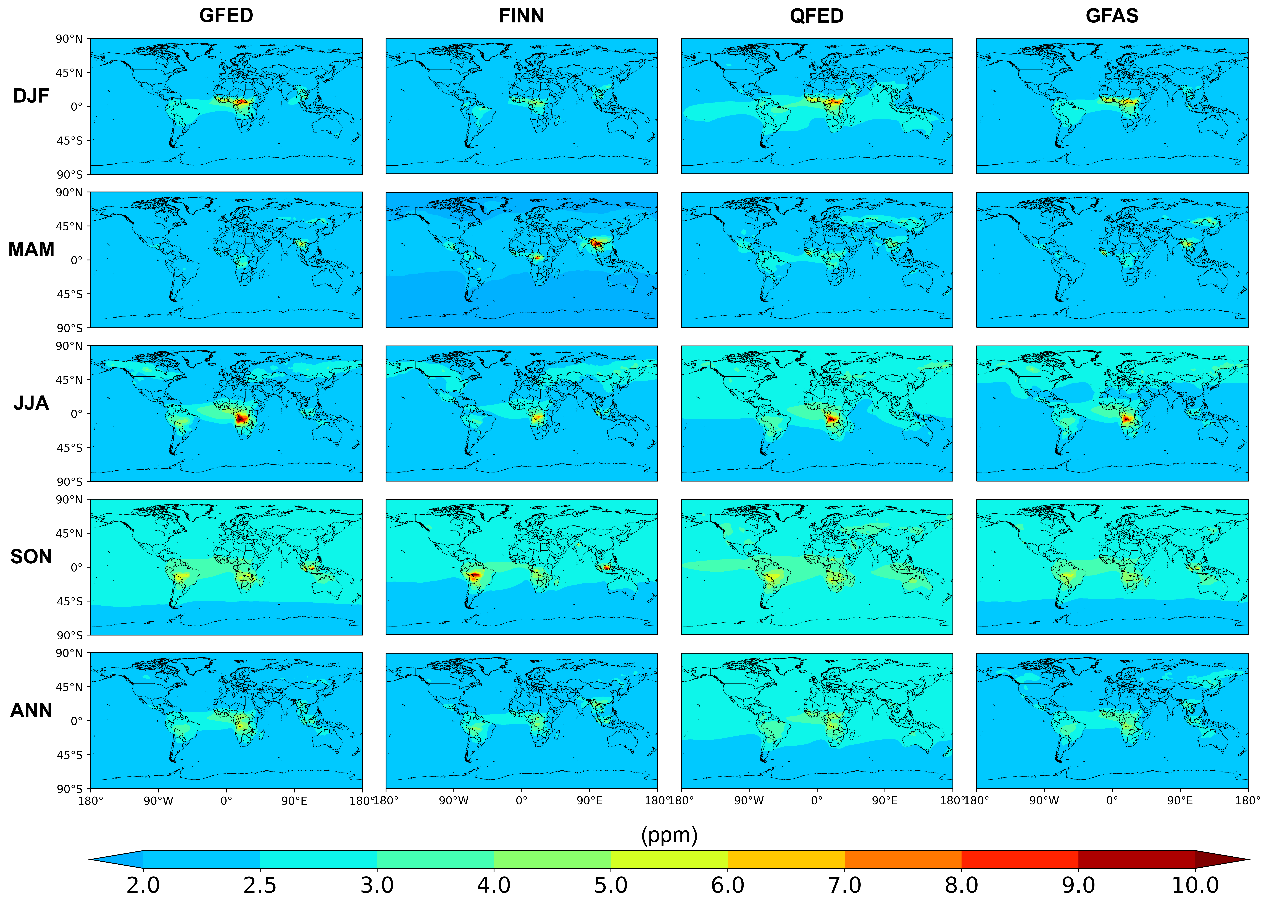 此项研究中,科研团队通过大气传输模型模拟,量化了全球火灾碳排放对大气二氧化碳浓度的影响,并结合地基观测和卫星数据验证,极大提高了模型模拟精度。研究结果还显示,火灾碳排放对大气二氧化碳浓度的影响存在较大的季节性变化,不同地区的二氧化碳浓度对火灾碳排放清单的敏感性也存在差别。
