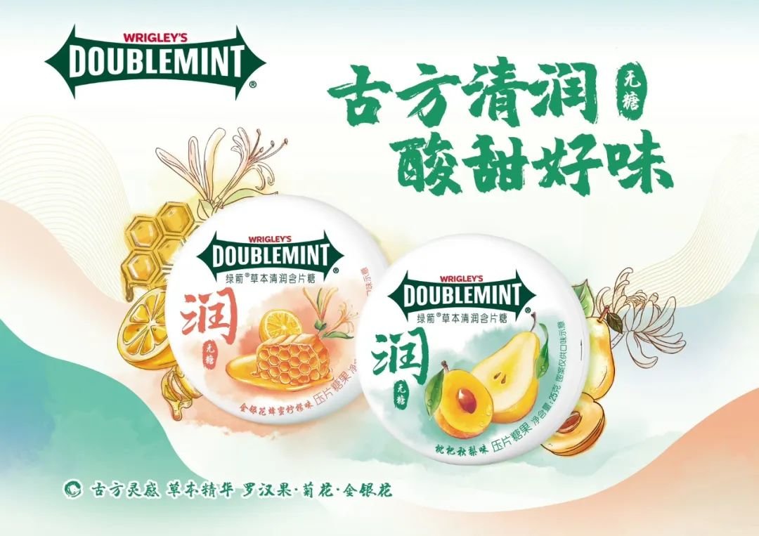 例如,小食代留意到,此前在2021年,玛氏推出了一款无糖绿箭草本清润含片糖,不仅去除了产品中的糖分,而且还与广州中医药大学合作,学习中国古法配方,添加罗汉果、菊花、金银花草本粉末,并调配了枇杷、秋梨、柠檬等水果口味。