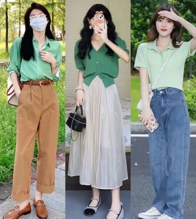 很推荐牛油果绿色,它不是指一种绿,而是像牛油果一直从外到里有深浅的变化。春天可以挑选一件牛油果绿色的短款针织衫,搭配浅米色的百褶长裙,配色真的是太美了,清新典雅,很唯美的感觉。