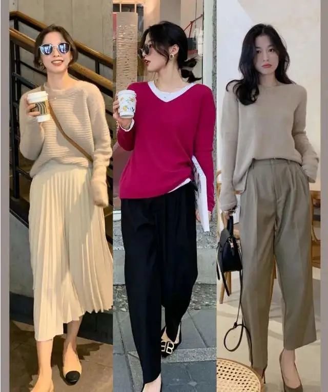 奶茶色毛衣搭配同色的百褶裙,颜色搭配温温柔柔的,同色系又带来高级质感,非常适合气质女生。