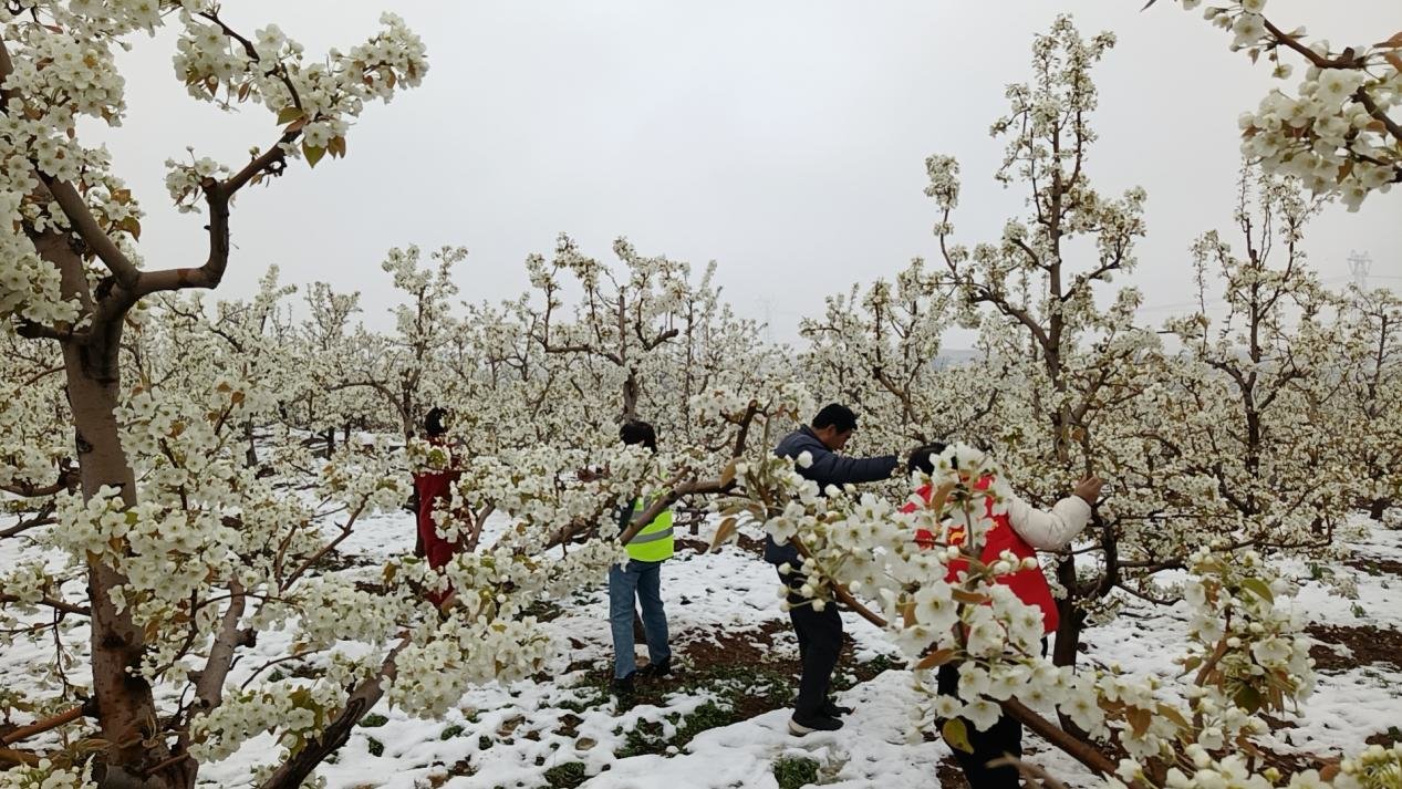 在鲁山县城区街头,市民们纷纷添衣保暖,漫天飞舞的雪花将开得灿烂的樱花穿上了“外套”,花虽逊雪三分白,雪却输花一段香。在该县万亩梨园、万亩桃园,雪花与刚刚绽放的梨花、桃花相映成趣,成了一种奇特景观。