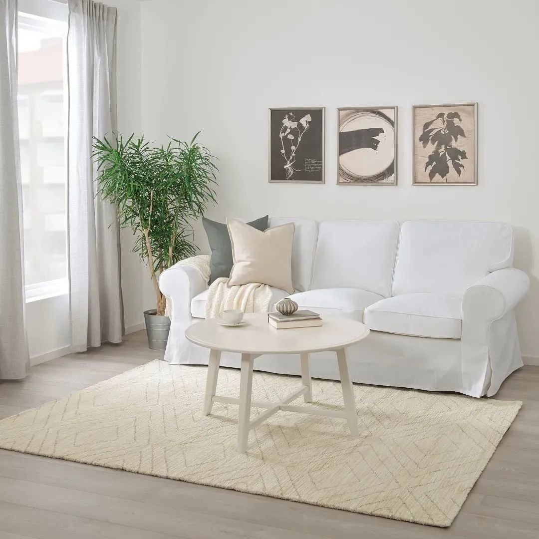 2、可以为房间增添色彩和图案,将沙发和茶几这部分空间连接起来,使空间看上去更有层次感。客厅如果铺设地毯,一般在沙发前,确定好布局,从沙发宽度向茶几延伸,通常地毯边缘距沙发脚2-5cm为宜。地毯颜色同样可以根据周围沙发、抱枕或背景装饰画的色彩来定。
