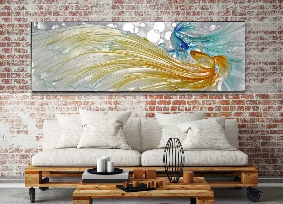 4、家里最常见的装饰品可能就是装饰画了,不同的画面给人不同的感觉,如果对家里一成不变的装饰画审美疲劳,不妨在适应整体风格的前提下试试新的装饰画。画可以选单张巨幅画,也可以多张画面组合在一起。巨幅装饰画多用在客厅,走廊,玄关等空间,要选择视觉第一落脚点,能够最大地满足视觉享受而且让装饰画有最佳的装饰美感。组合装饰画的画面丰富,组合形式多样,可以使整个空间更具表现力。