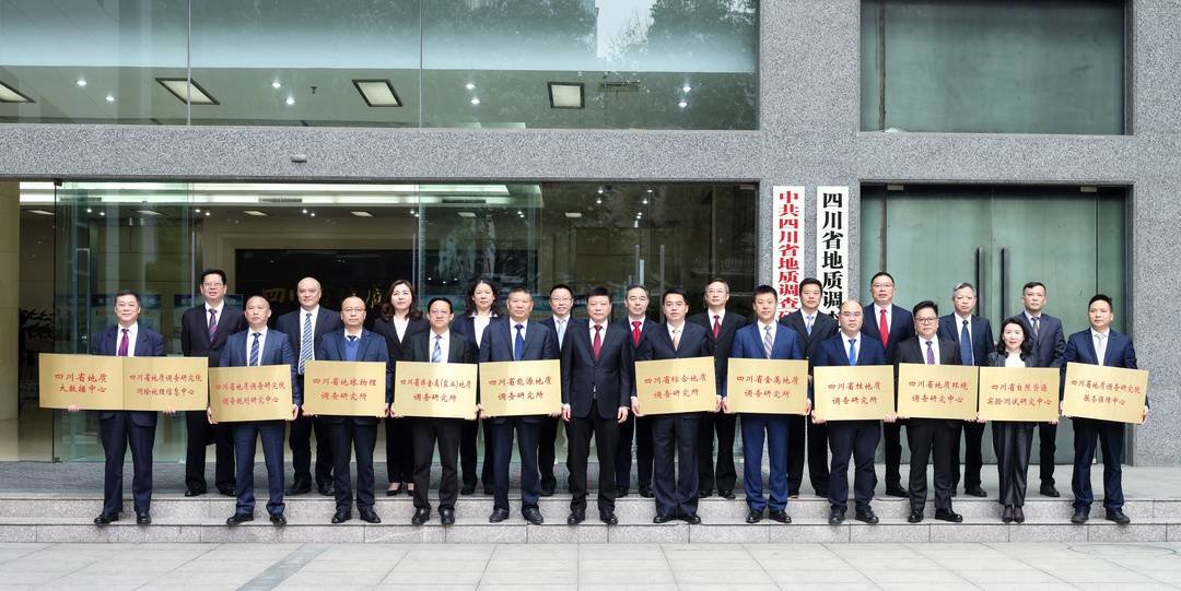 自然资源厅党组成员、副厅长朱明仓,省地质局党委书记、局长伍定,省自然资源投资集团党委书记、董事长徐志文等领导出席仪式并共同揭牌。省地质调查研究院党委书记、院长蒋俊致辞并为12家院属单位授牌。按照省委编委批准的改革方案,此次省地质调查研究院整合优化的10个科研事业单位和其他2个事业单位包括:四川省综合地质调查研究所、四川省能源地质调查研究所、四川省金属地质调查研究所、四川省非金属(盐业)地质调查研究所、四川省核地质调查研究所、四川省地球物理调查研究所、四川省地质环境调查研究中心、四川省地质调查研究院调查规划研究中心、四川省自然资源实验测试研究中心、四川省地质调查研究院测绘地理信息中心、四川省地质大数据中心、四川省地质调查研究院服务保障中心。