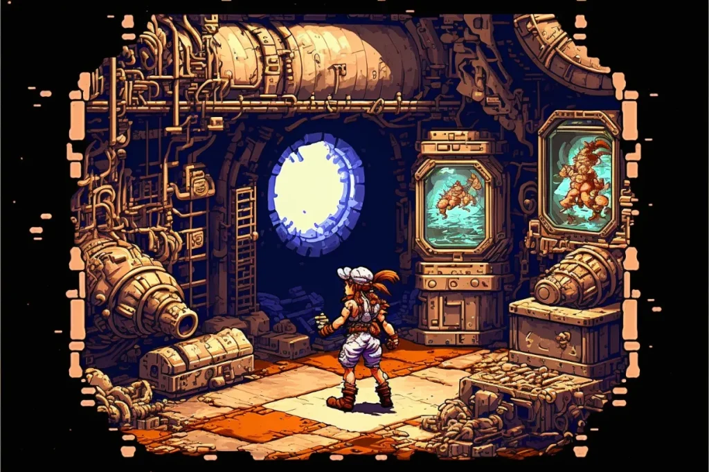 clean pixel art, inside of dungeon, style of metal slug1996--ar3:2
