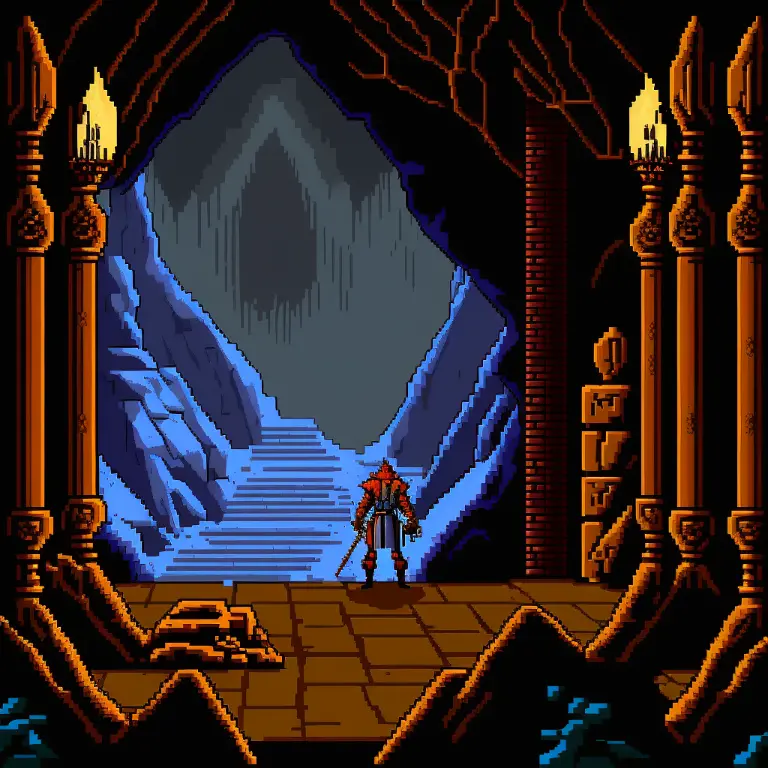 pixel art, inside of cave, style of castlevania