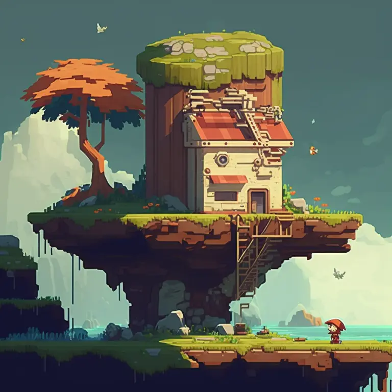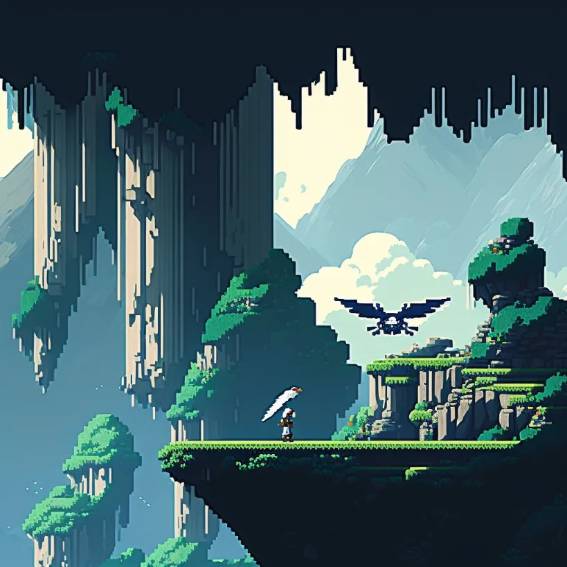 pixel art, misty mountains, style of cave story猫头鹰男孩 (2016)