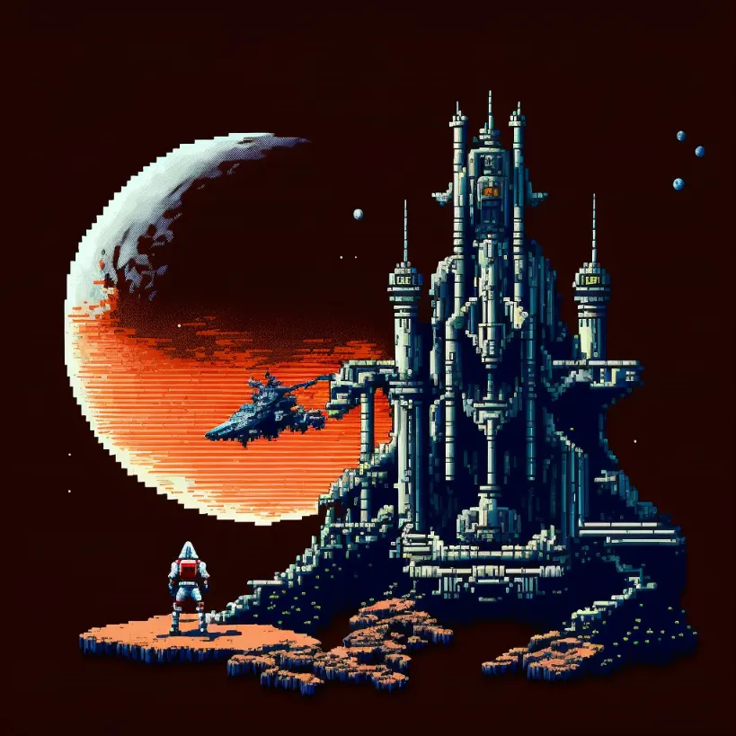 clean pixel art, moon base with rover, style of castlevania1986
