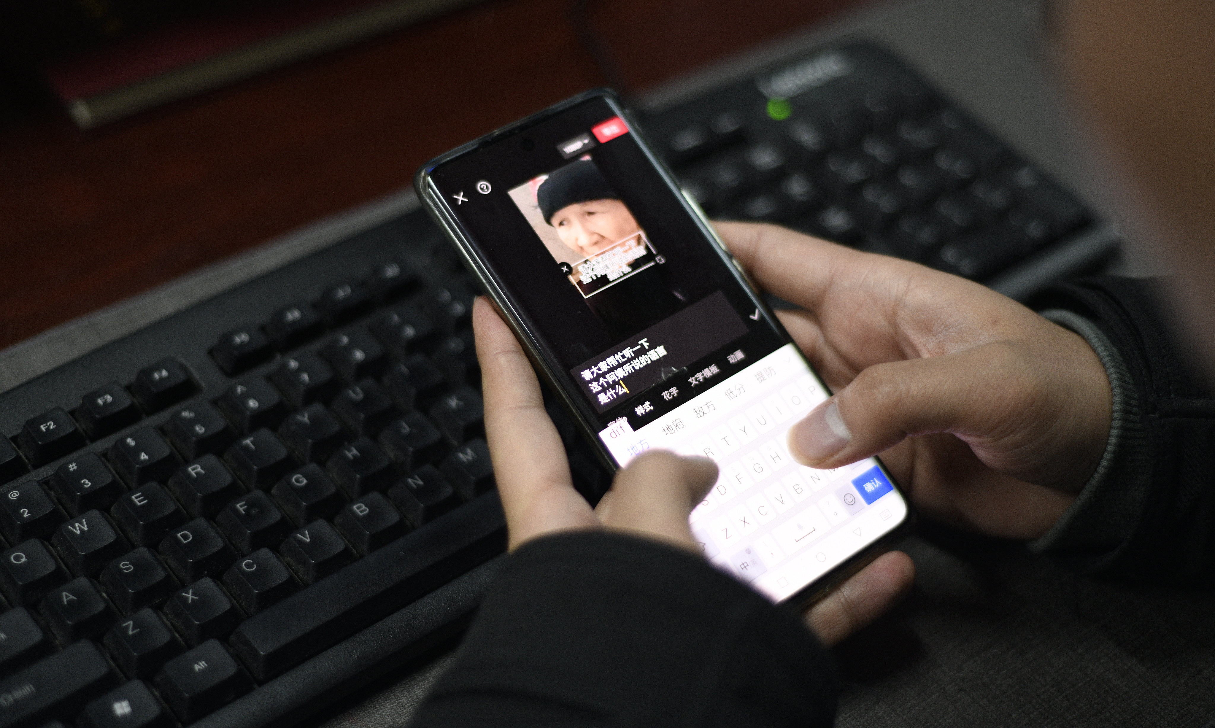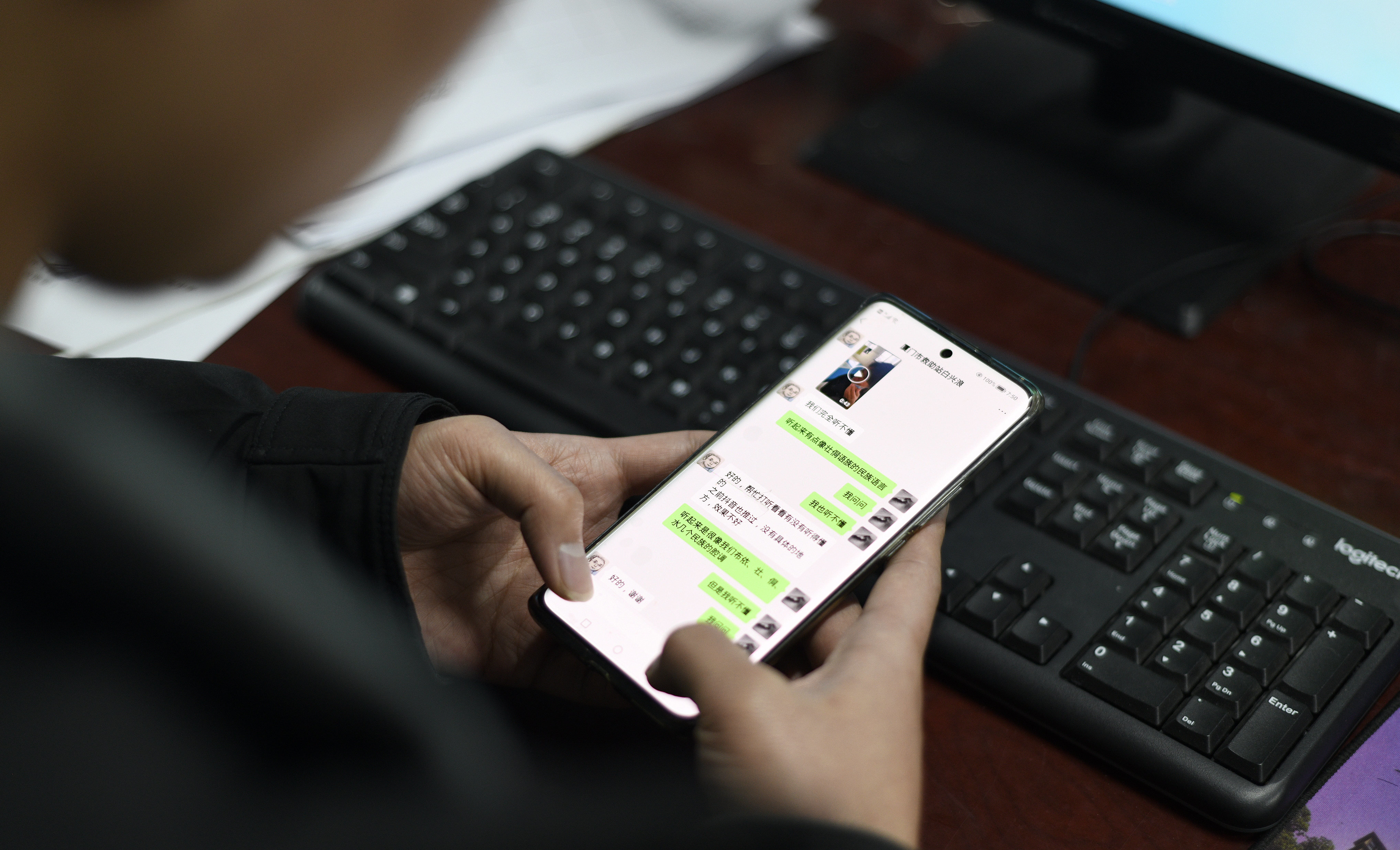 黄德峰在剪辑寻亲视频,准备发布到网上。(新华社发 刘朝富摄)