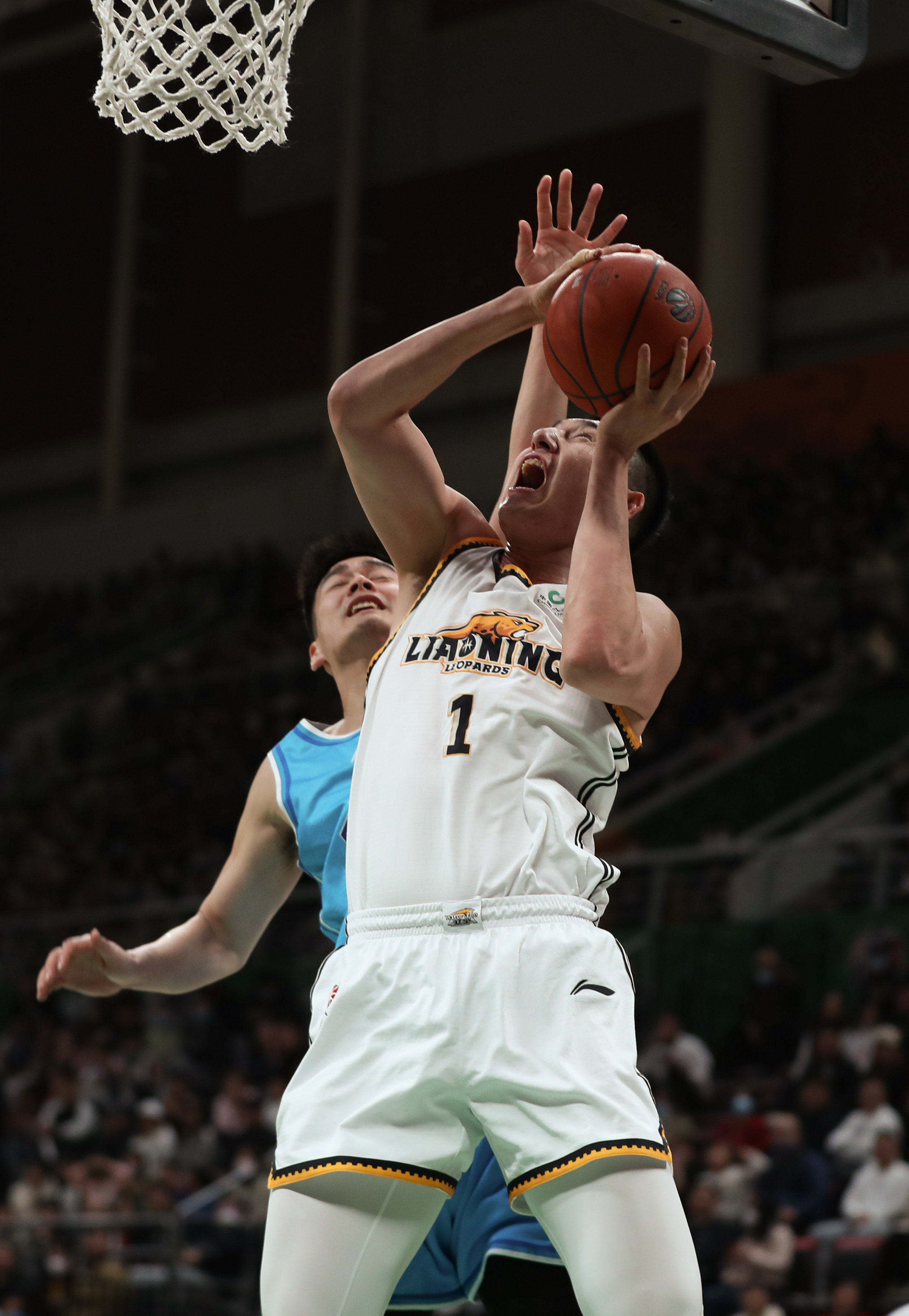 3月17日,辽宁本钢队球员付豪(右)在比赛中上篮。新华社记者 龙雷 摄