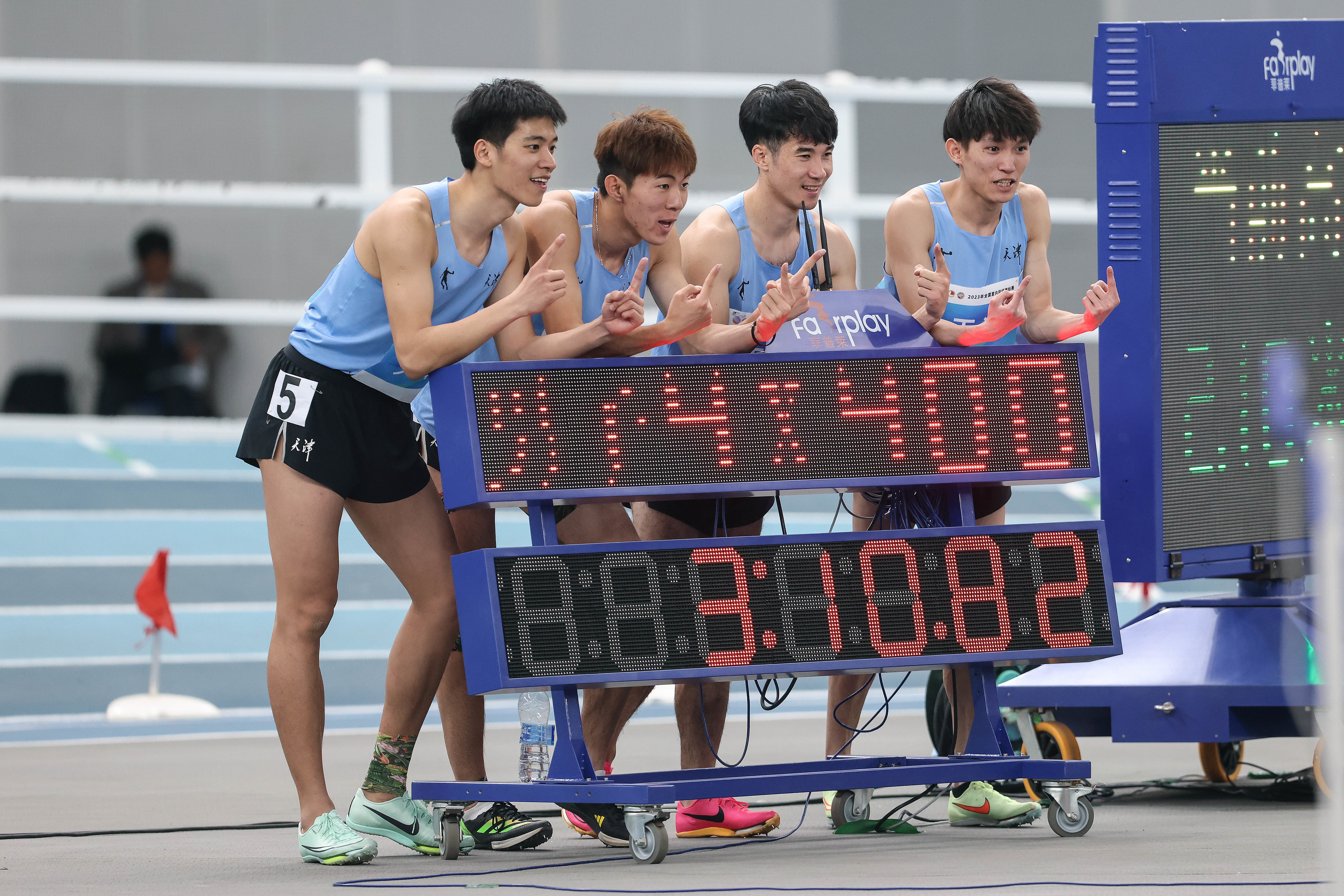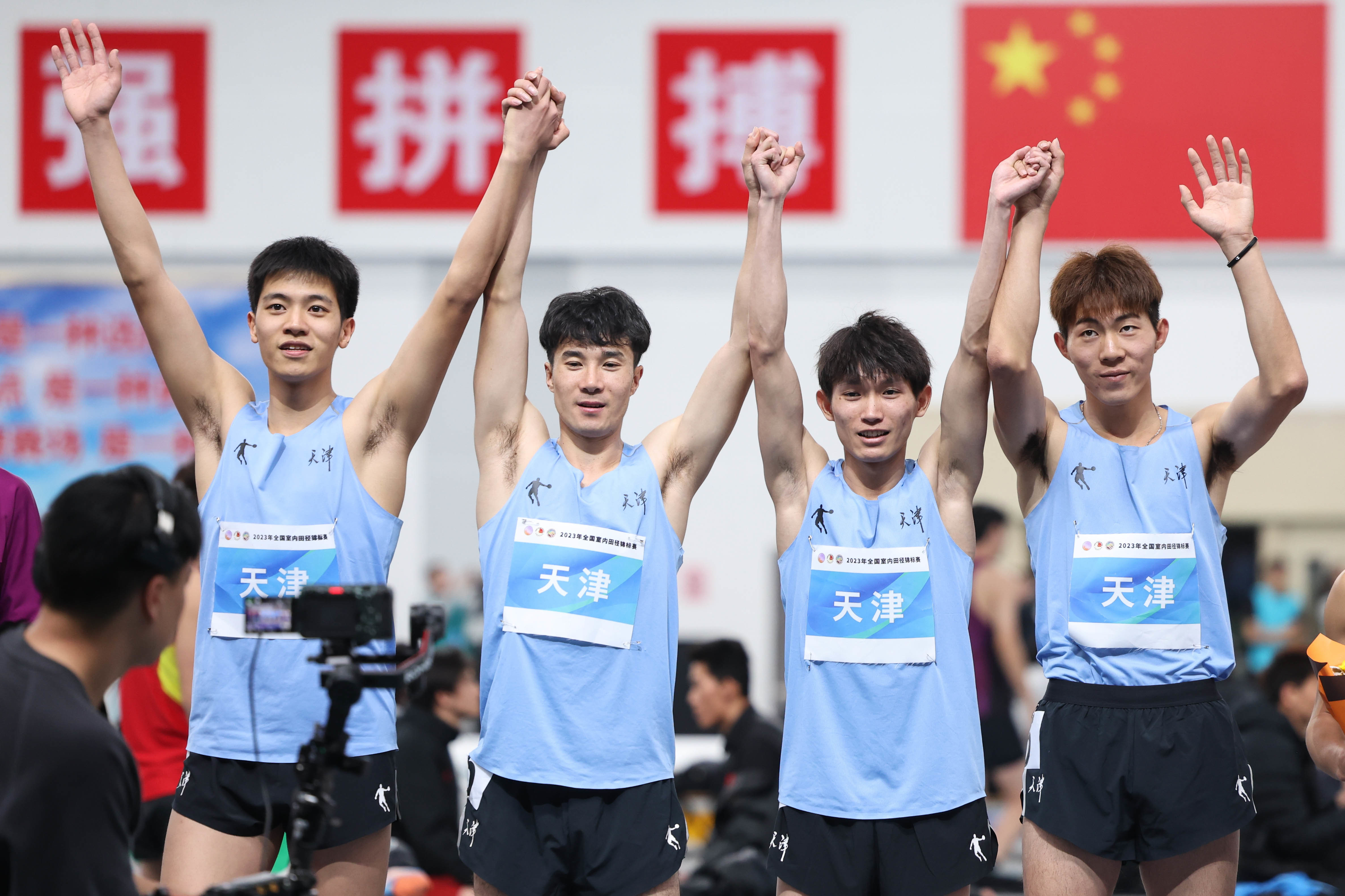 当日,在天津团泊体育中心进行的2023年全国室内田径锦标赛男子4X400米决赛中,天津队以3分10秒82的成绩夺得冠军,并创造该项目新的全国室内纪录。