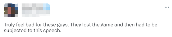 也有网友说,“真为这些家伙感到难过。他们输了比赛,然后不得不接受这样的演讲。”